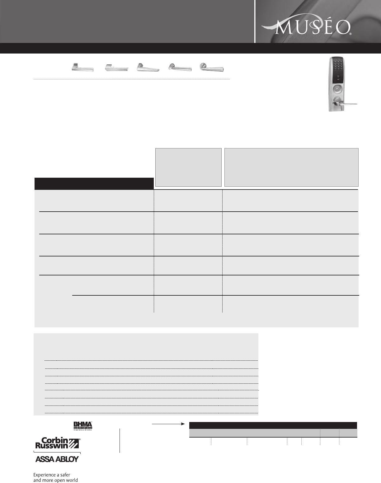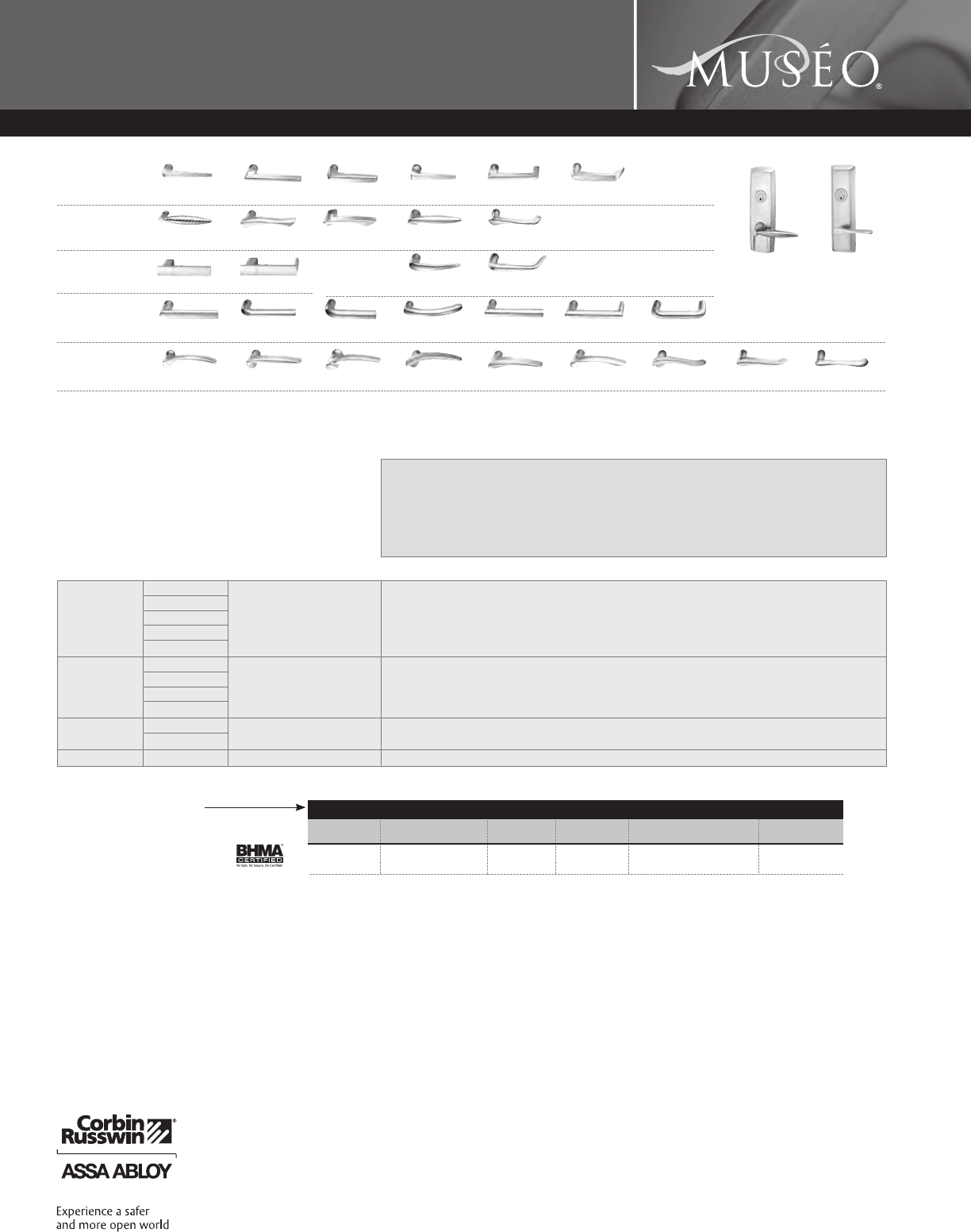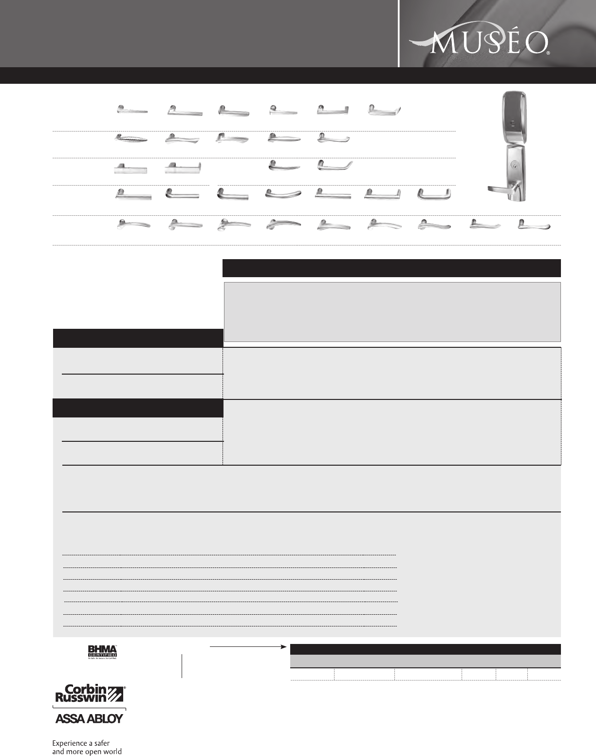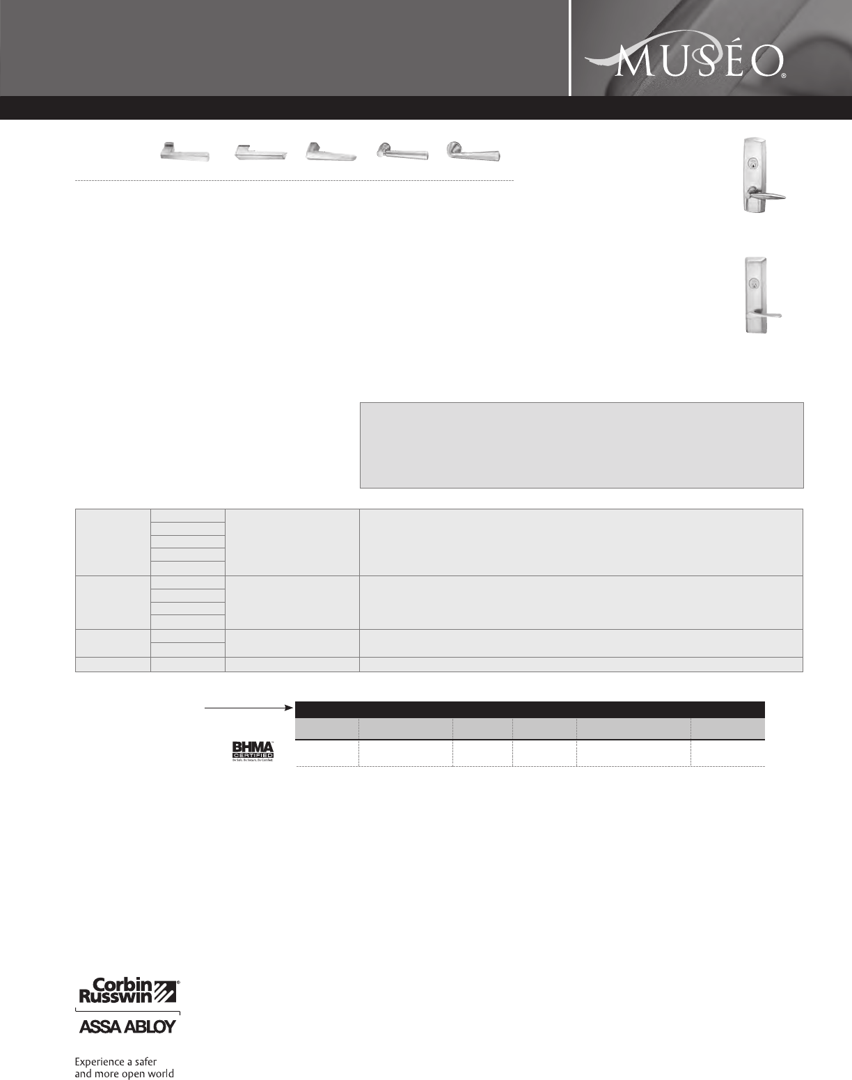 Corbin Russwin and Design®, Corbin®, Russwin®, and Design® Access 800®, Muséo®, and SecureBolt® are registered trademarks of Corbin Russwin, Inc., an ASSA ABLOY Group company.