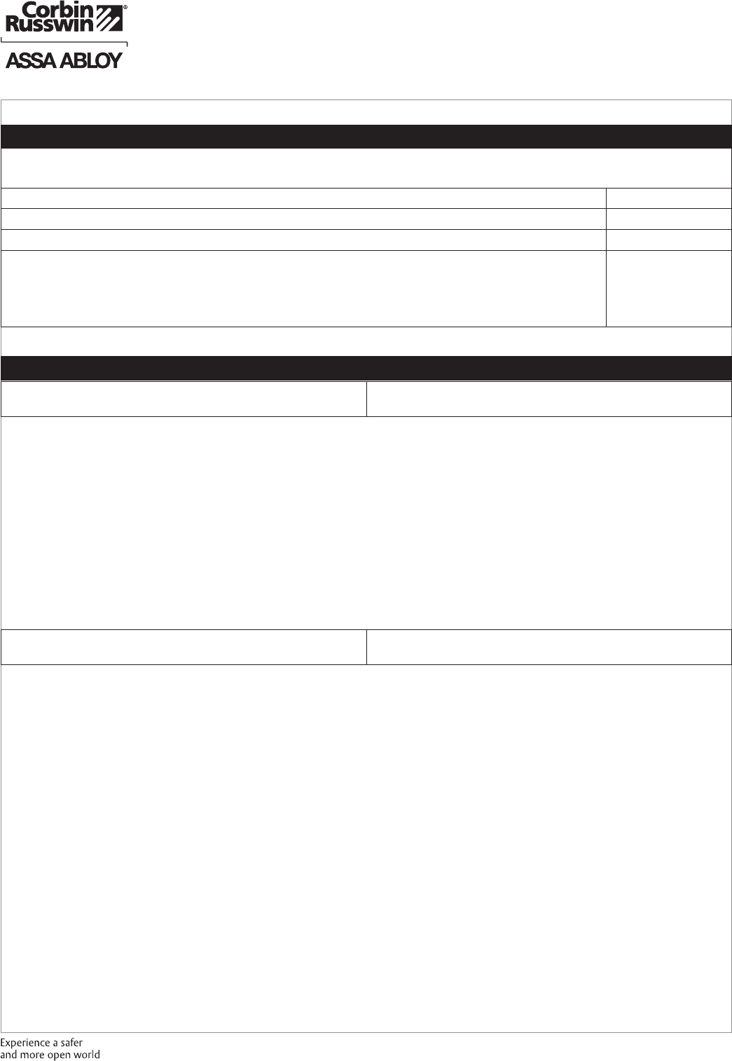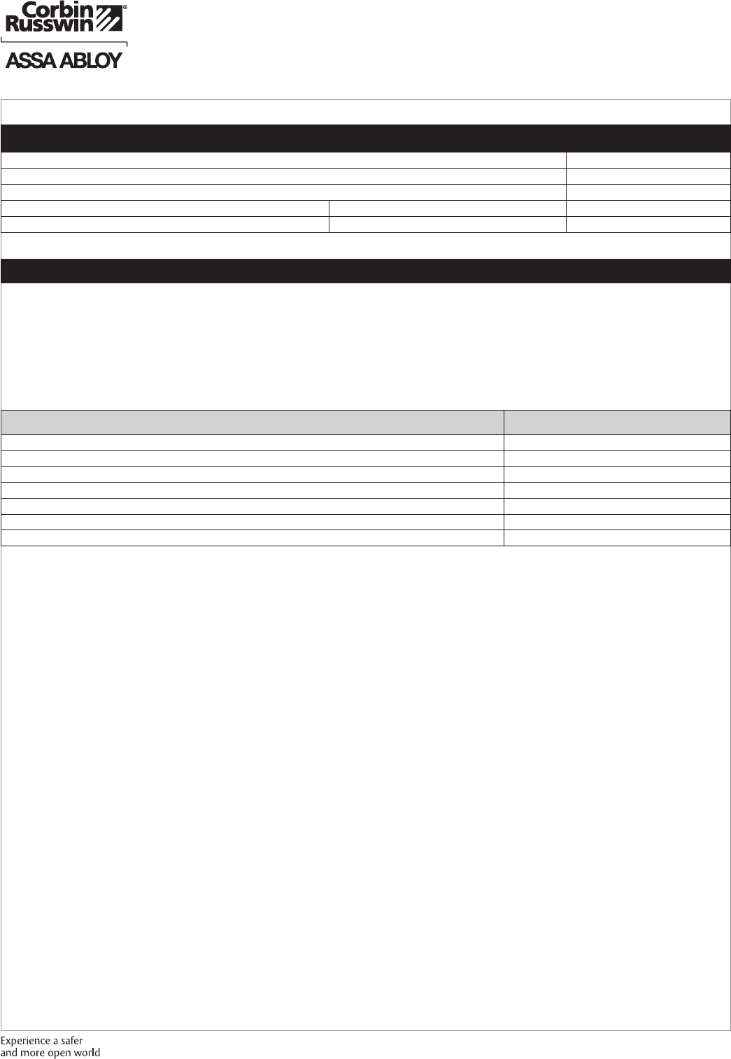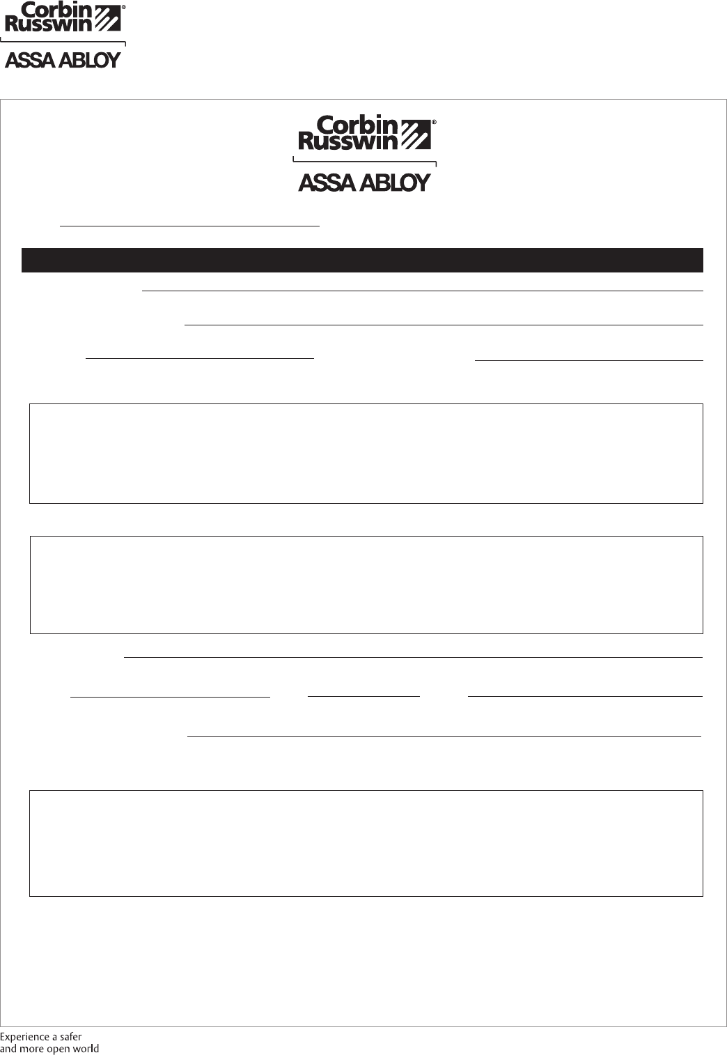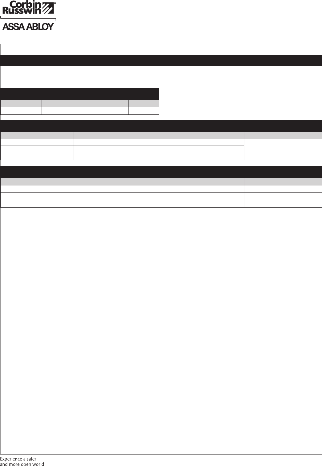 authorized Corbin Russwin Distributor or Sales Representative.