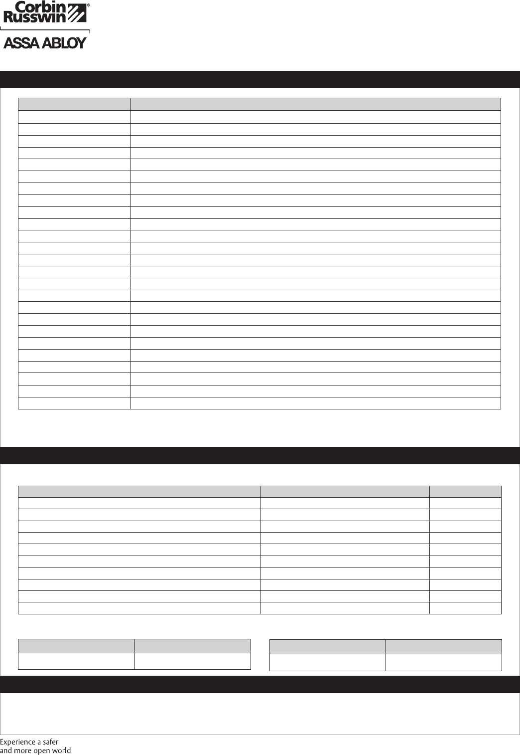 Copyright © 2002-2020 Corbin Russwin, Inc., an ASSA ABLOY Group company. All rights reserved. Reproduction in whole or in part without the express written permission of Corbin Russwin, Inc. is prohibited.
