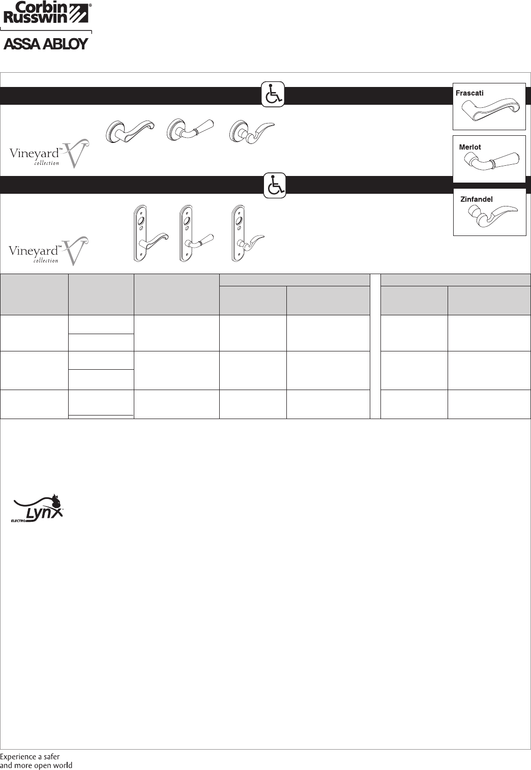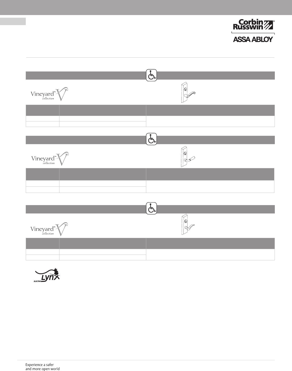 Safeguard™, PathLite™ and Vineyard™ are trademarks of Corbin Russwin, Inc. an ASSA ABLOY Group company. Unitrol® is a registered trademark of Yale Security Inc., an ASSA ABLOY Group company.