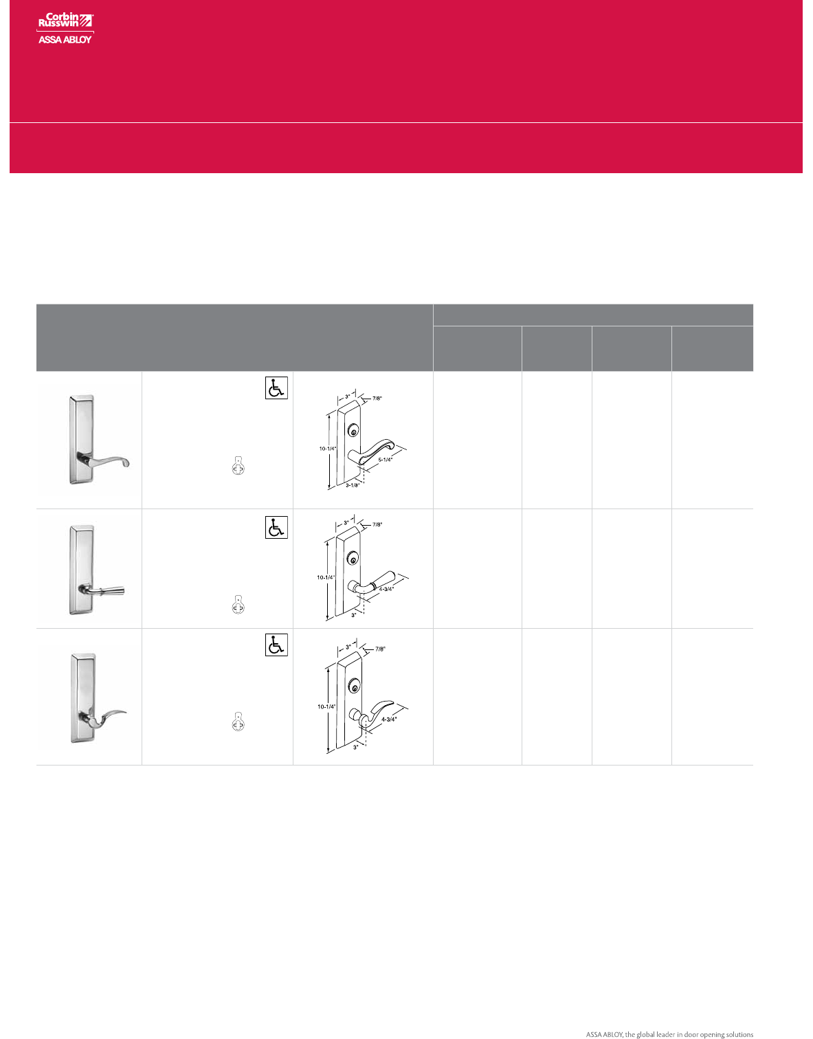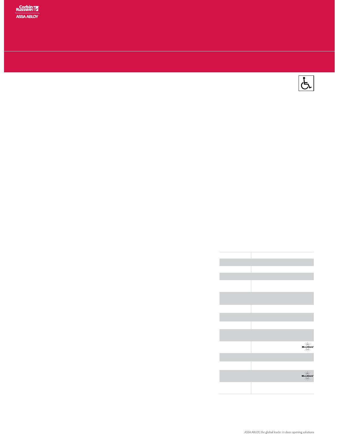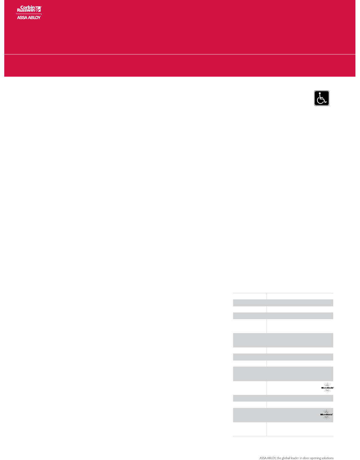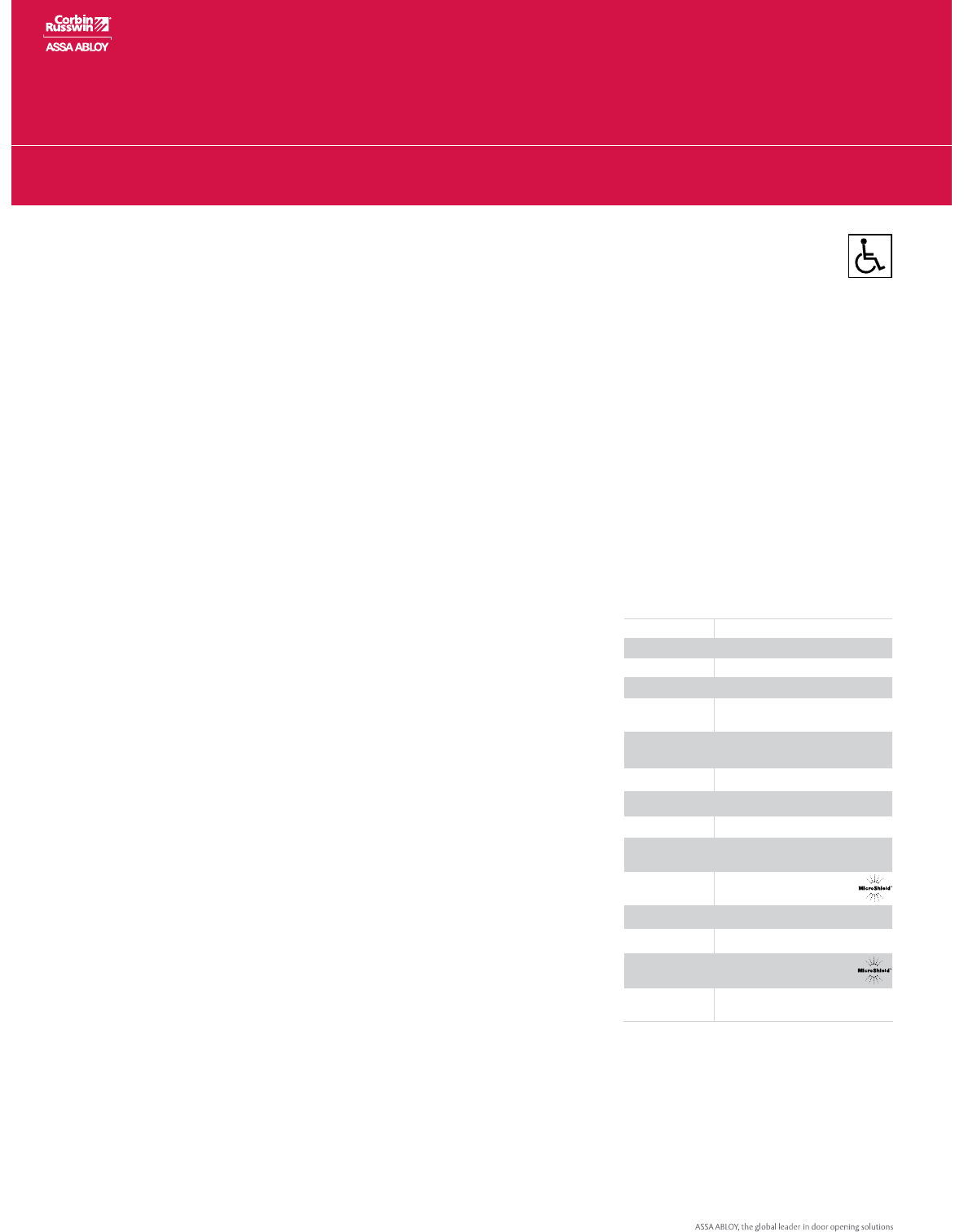 Corbin Russwin, Inc., an ASSA ABLOY Group company. All rights reserved. Reproduction in whole or in part without the express written permission of Corbin Russwin, Inc. is
