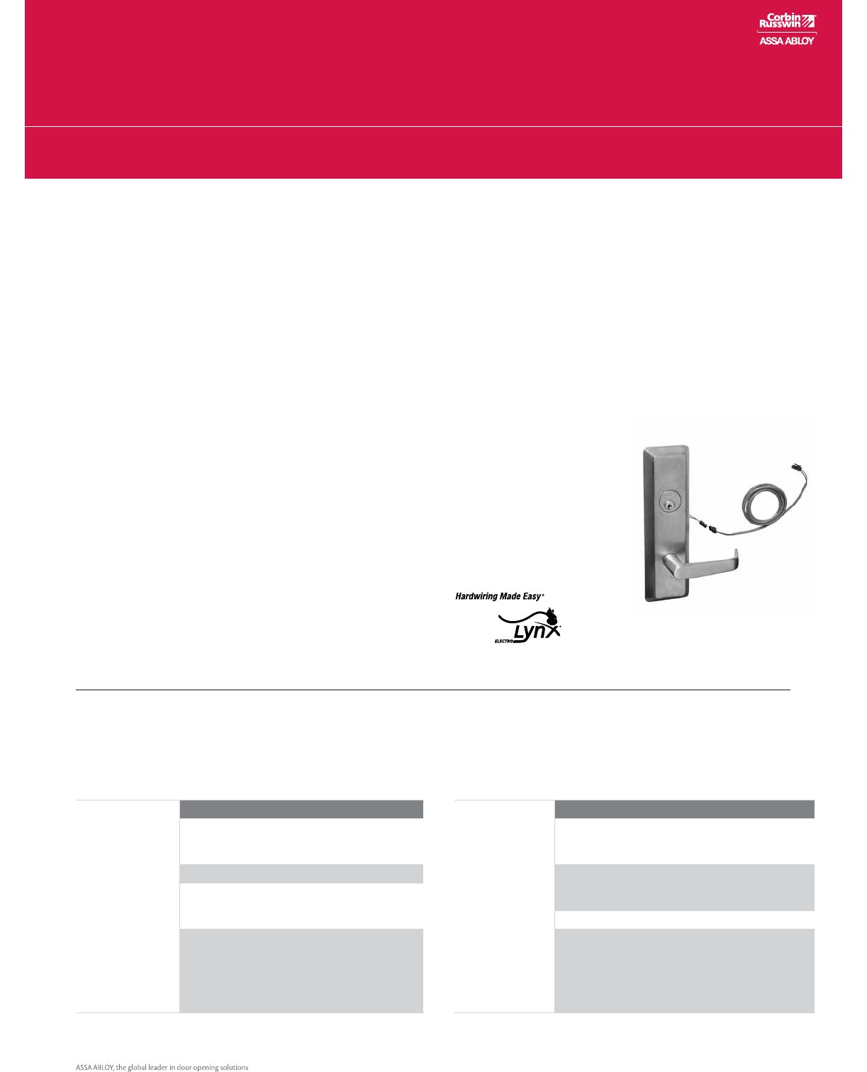 Copyright © 2000-2015 Corbin Russwin, Inc., an ASSA ABLOY Group company. All rights reserved. Reproduction in whole or in part without the express written permission of Corbin Russwin, Inc. is prohibited.45063-8/15