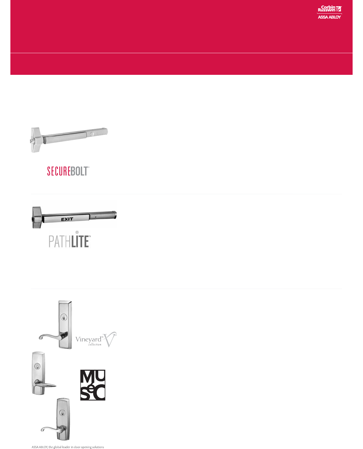 Corbin Russwin and Design®, SecureBolt® and Muséo®are registered trademarks of Corbin Russwin, Inc., an ASSA ABLOY Group company. PathLite™ and Vineyard™ are