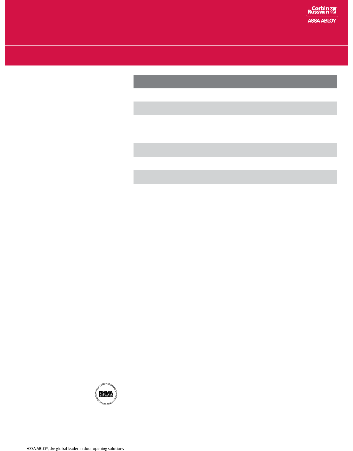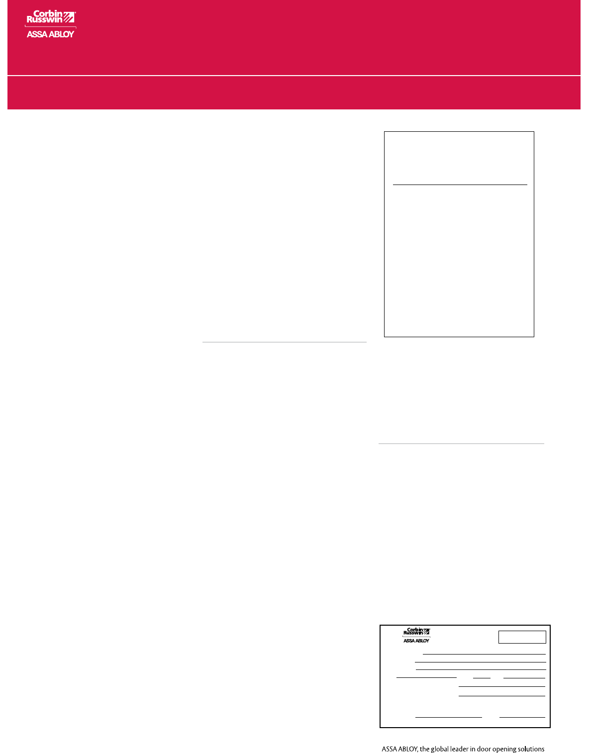 its materials. Copyright © 2001-2015 Corbin Russwin, Inc., an ASSA ABLOY Group company. All rights reserved. Reproduction in whole or in part without the express written