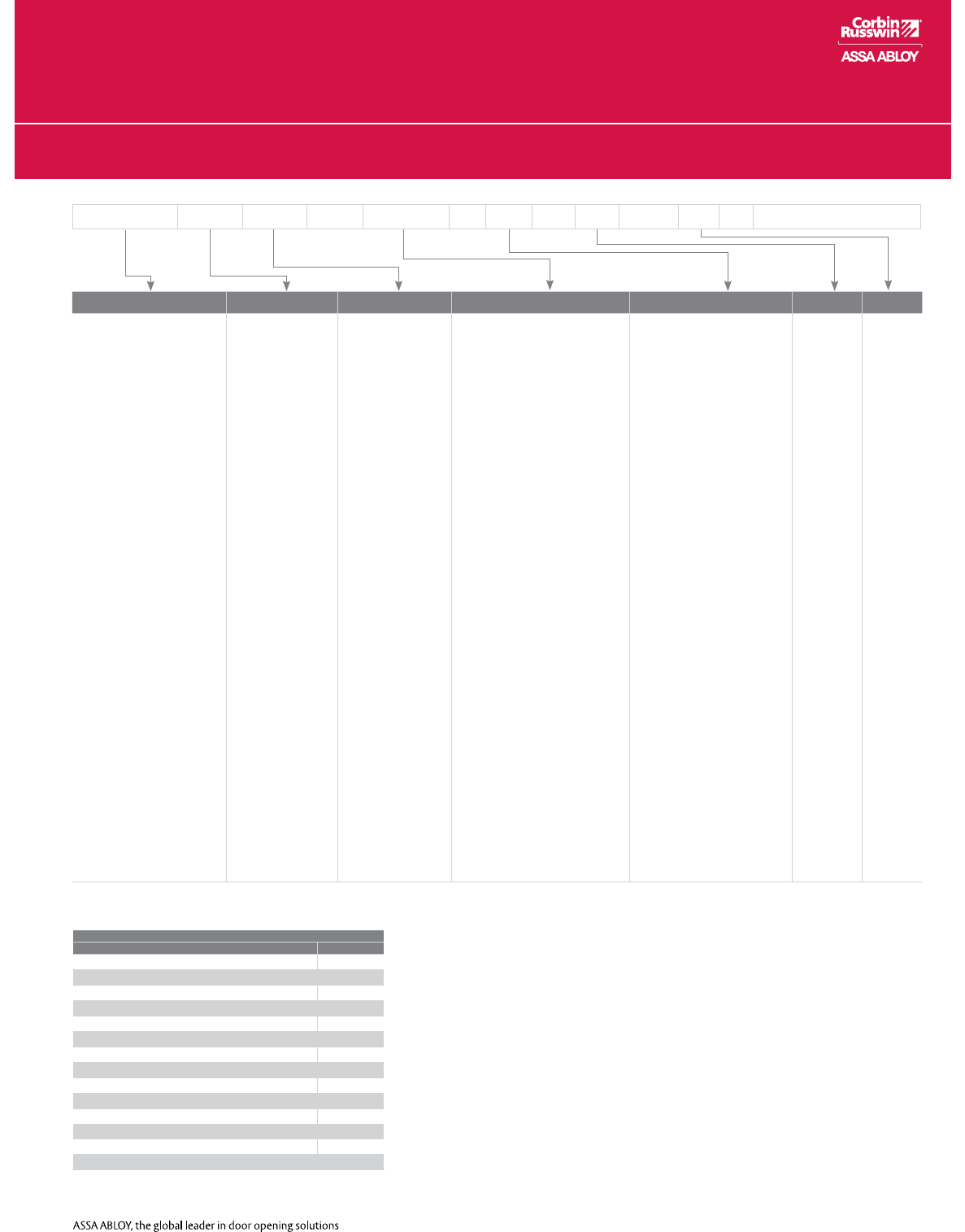 time of publication. Corbin Russwin, Inc., an ASSA ABLOY Group company reserves the right to change availability of any item in this catalog, its design, construction, and/or