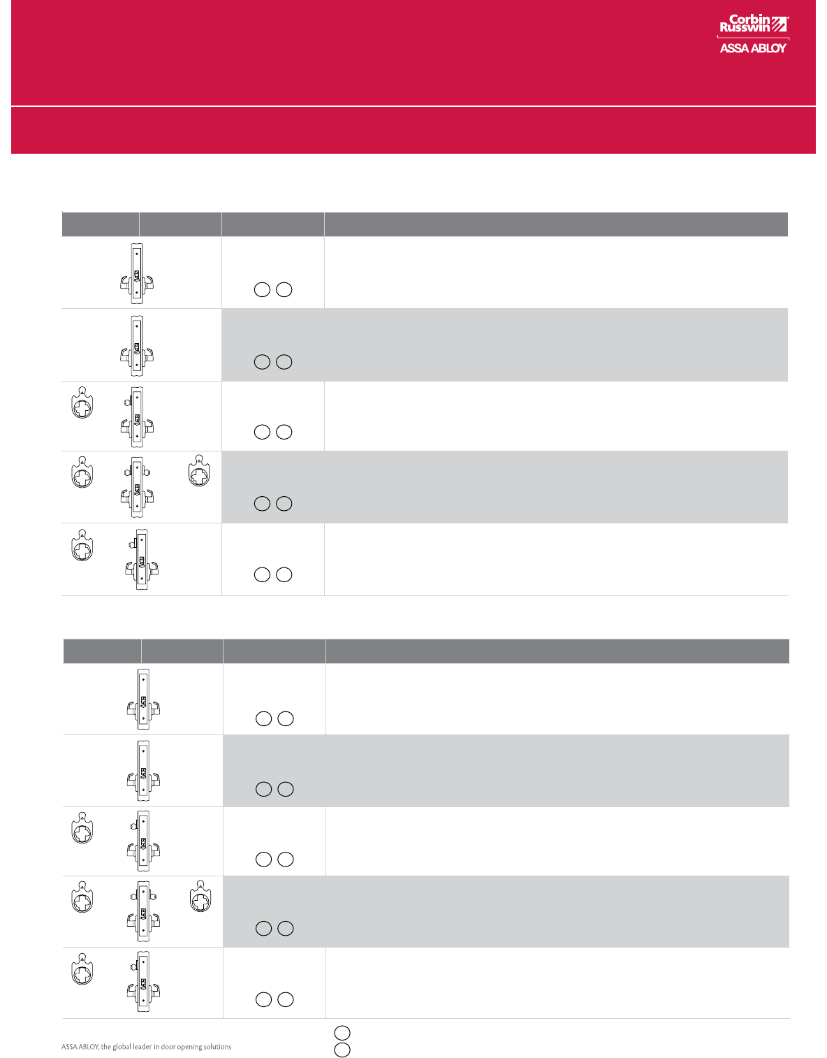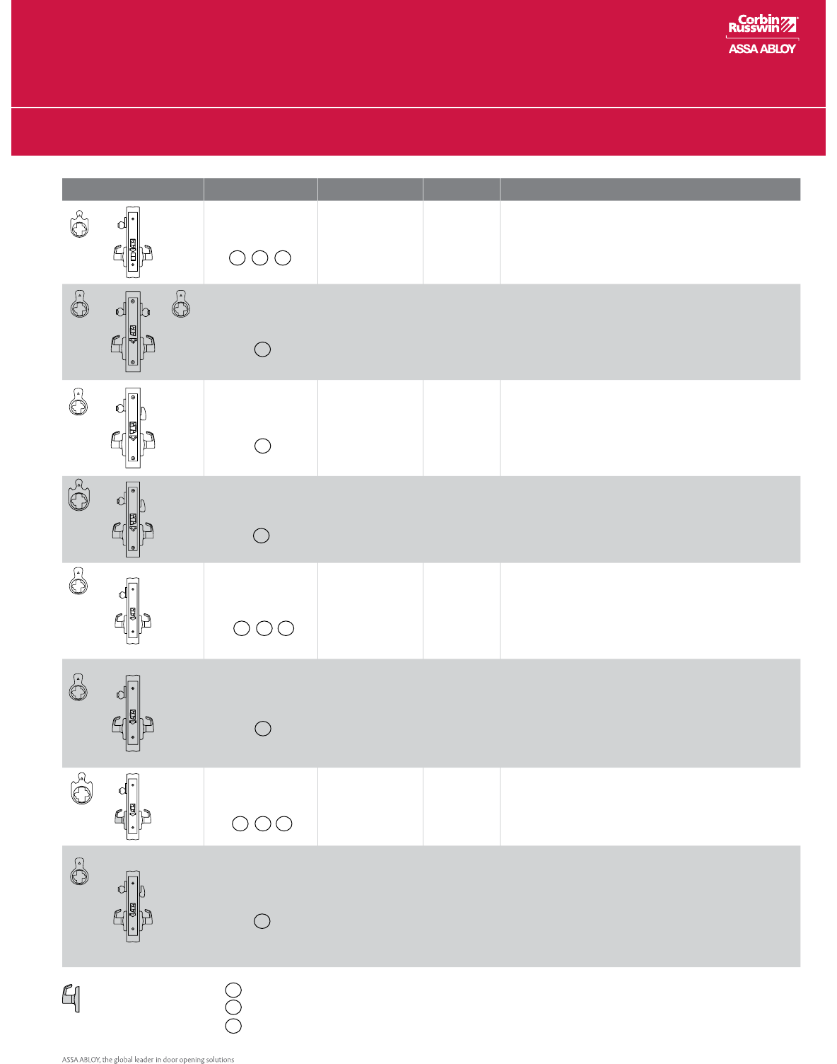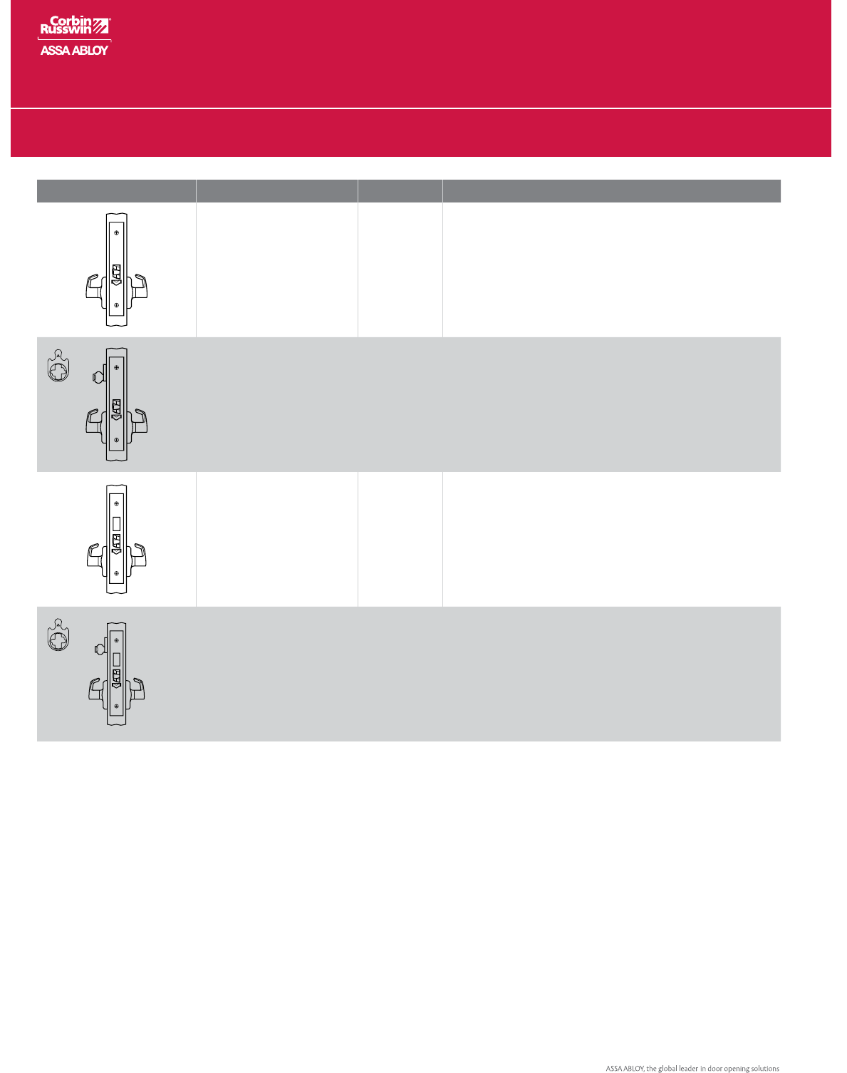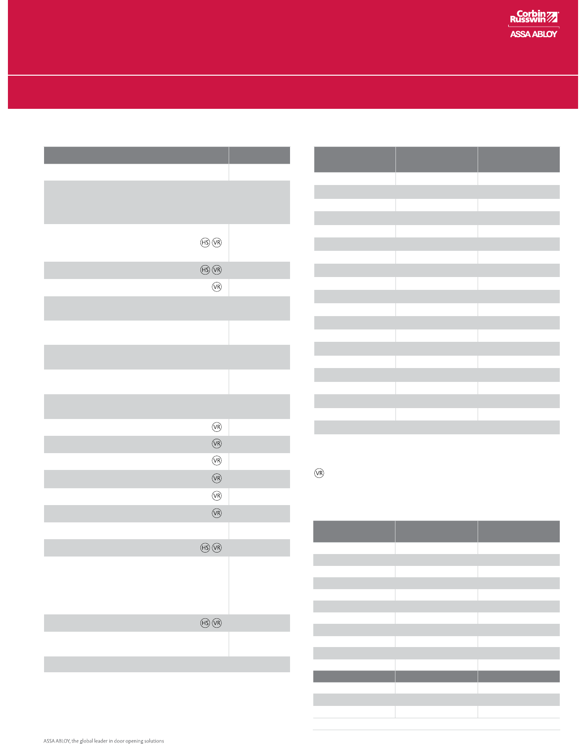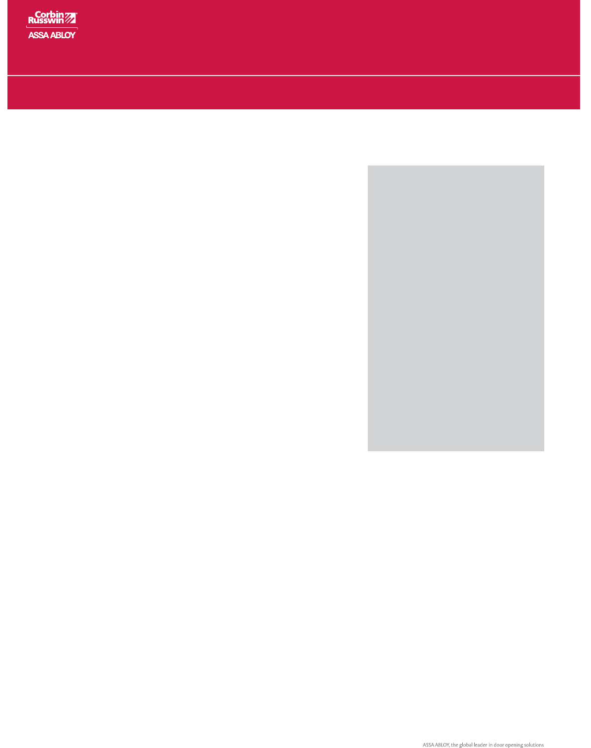 Russwin, Inc., an ASSA ABLOY Group company. All rights reserved. Reproduction in whole or in part without the express written permission of Corbin Russwin, Inc.