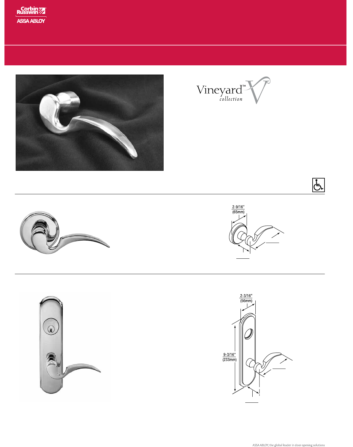 Corbin Russwin and Design®, Muséo®, Access 3® and Ecoflex® are registered trademarks of Corbin Russwin, Inc., an ASSA ABLOY Group company. Vineyard™ is a trademark