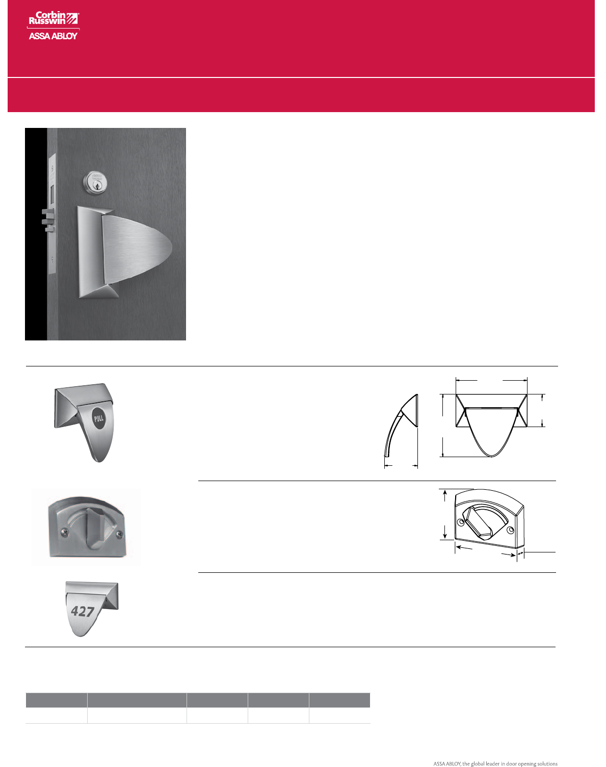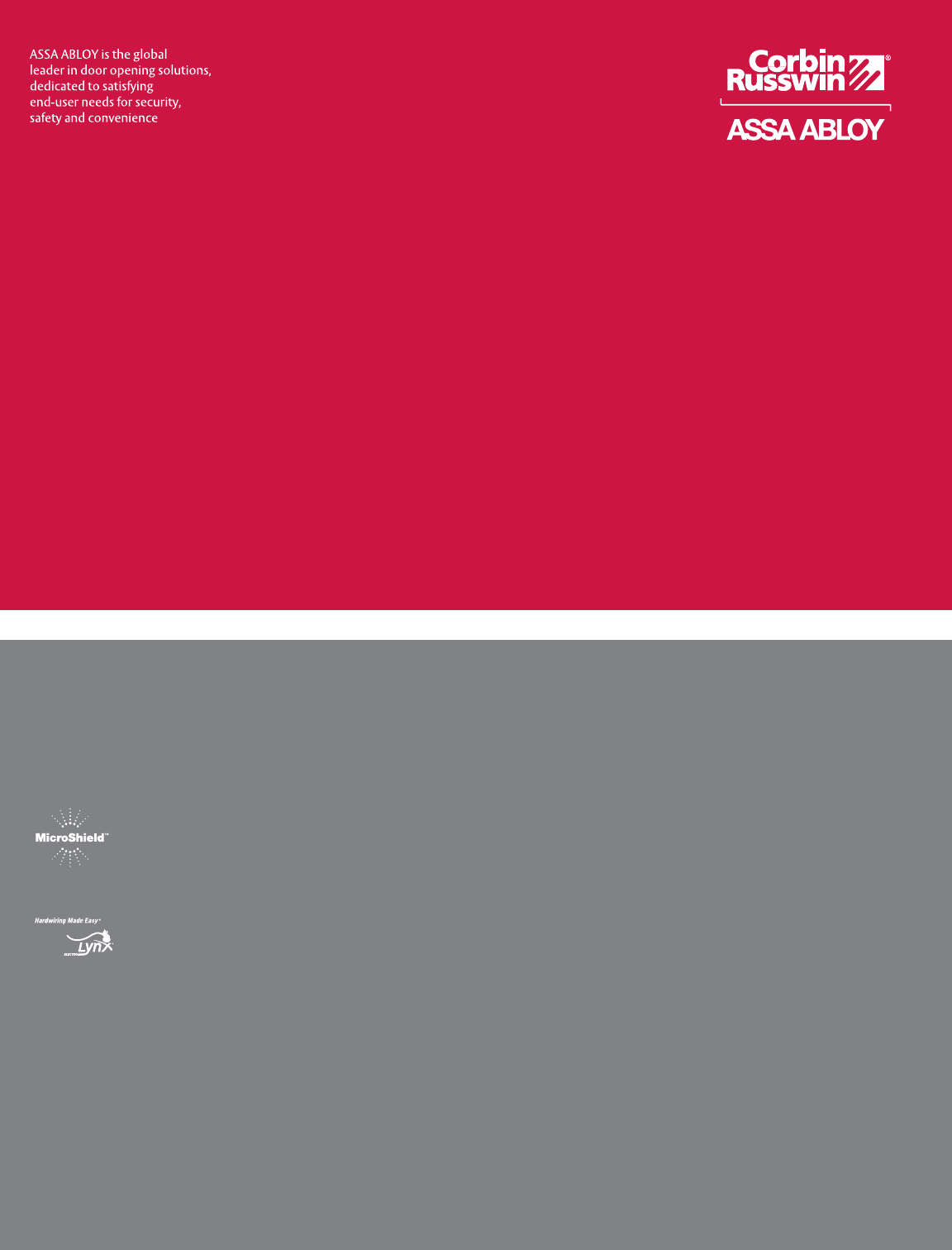mentioned for reference purposes only. These materials are protected under US copyright laws. All contents current at time of publication. Corbin Russwin, Inc., an ASSA