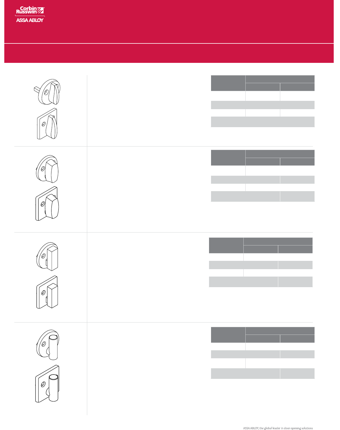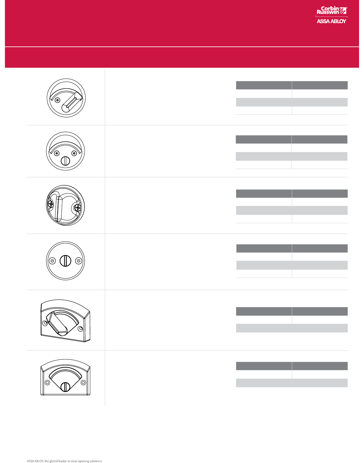 ABLOY Group Company, reserves the right to change availability of any item in this catalog, its design, construction, and/or its materials. Copyright © 2001, 2015 Corbin