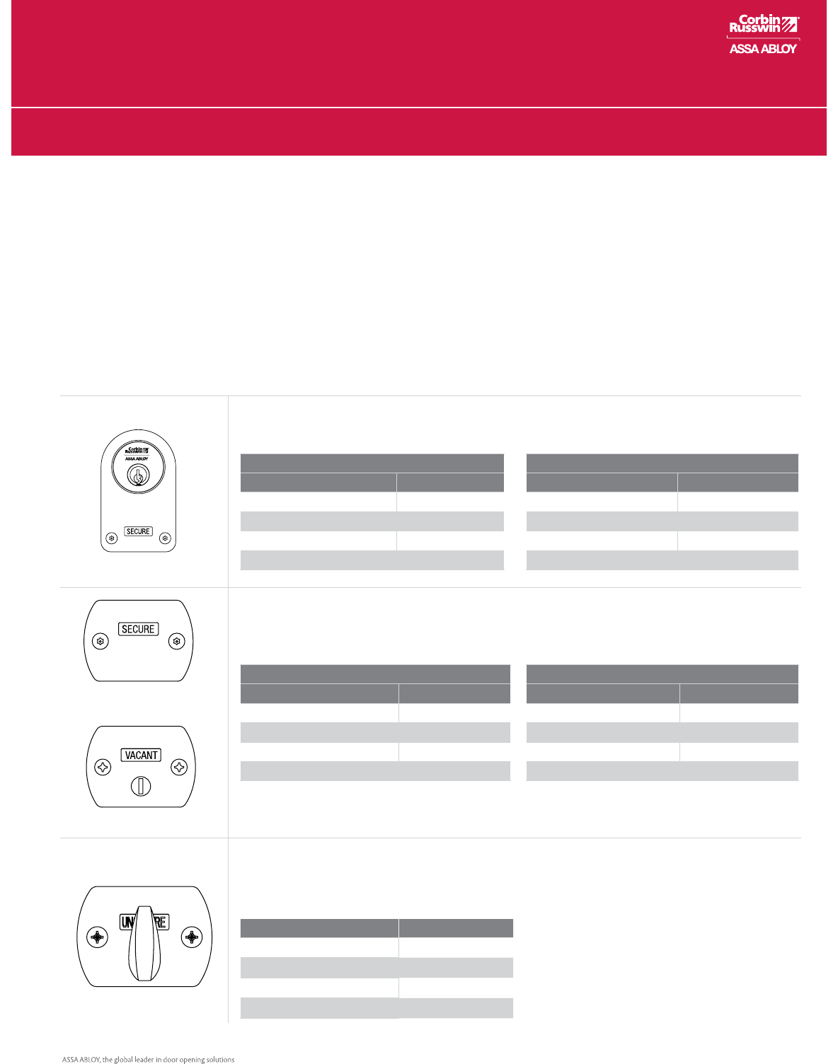of Corbin Russwin, Inc., an ASSA ABLOY Group company. Other products’ brand names may be trademarks or registered trademarks of their respective owners and are
