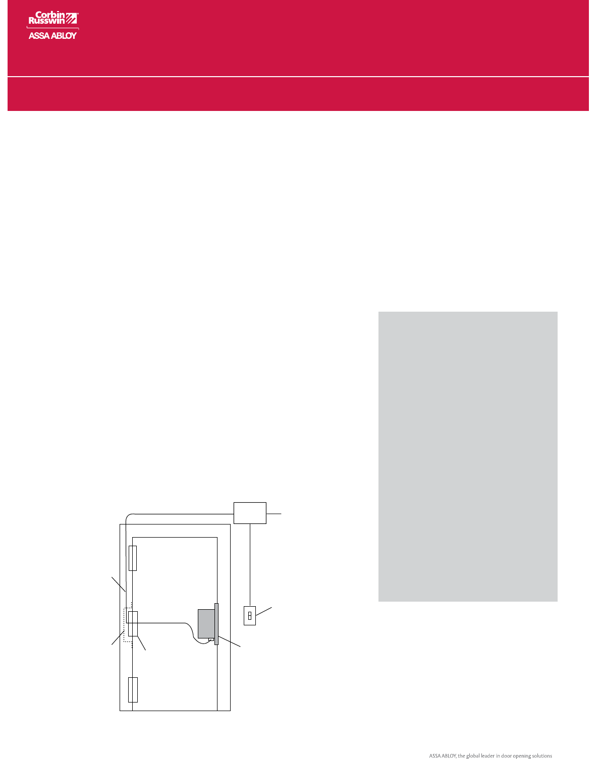 Copyright © 2001-2015 Corbin Russwin, Inc., an ASSA ABLOY Group company. All rights reserved. Reproduction in whole or in part without the express written permission of Corbin Russwin, Inc. is prohibited. 45300-8/15