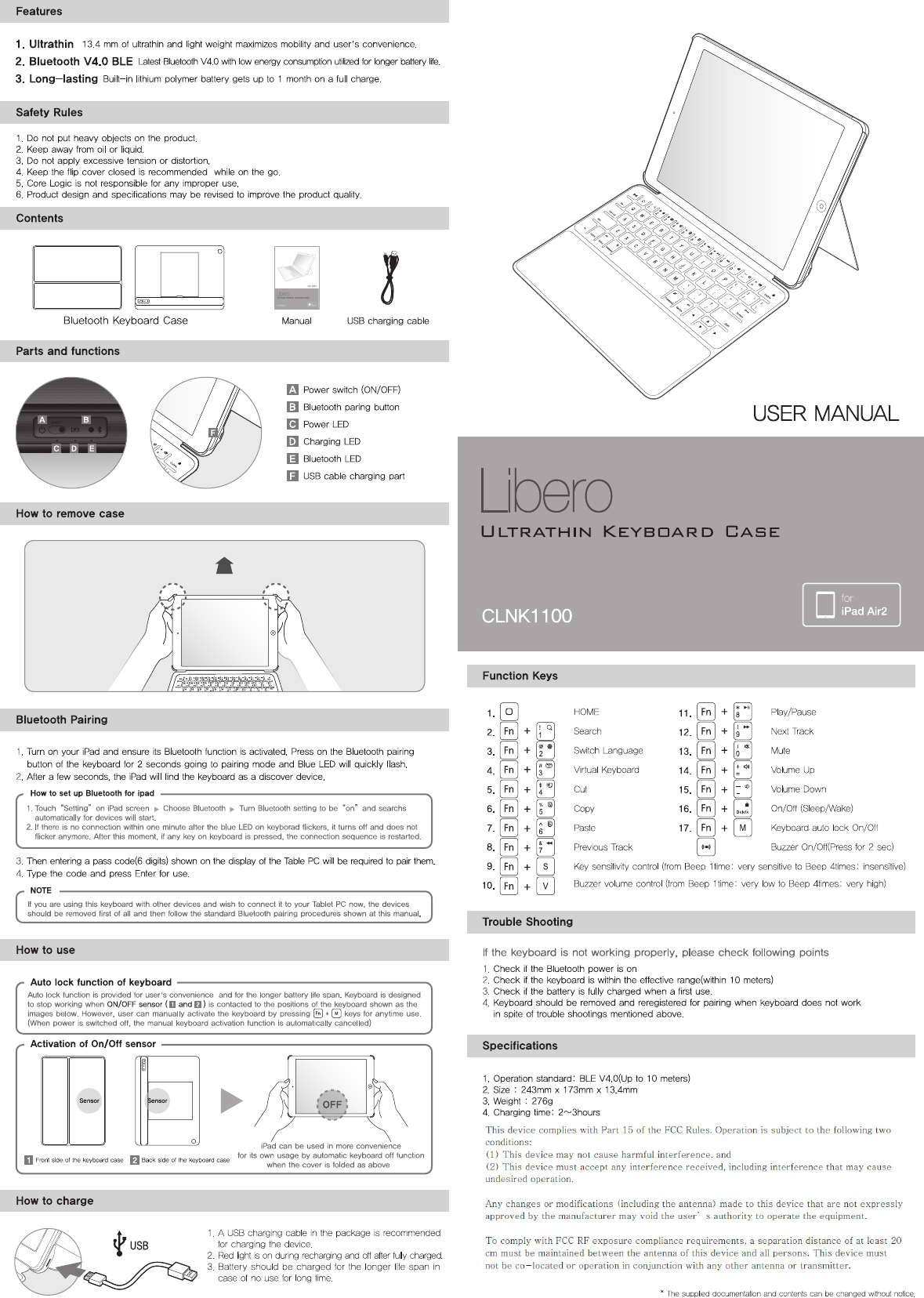 Core Logic CLNK1100 Bluetooth Keyboard Case User Manual