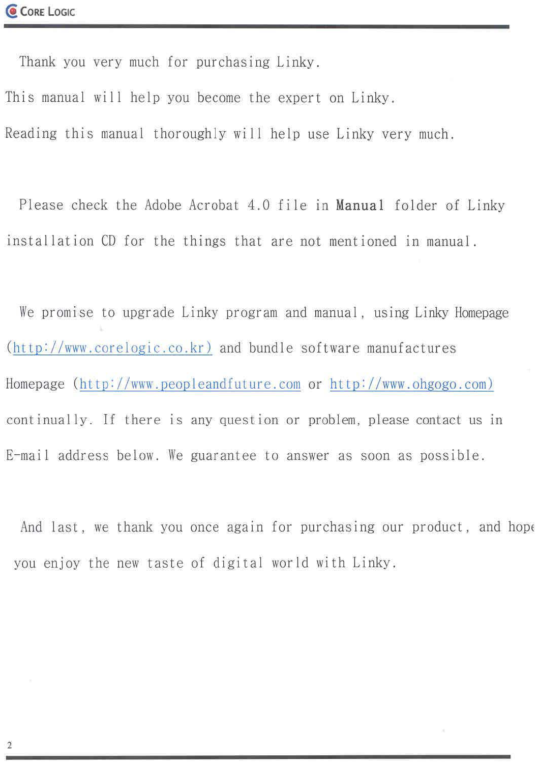 Core Logic LINKY PC Camera User Manual Linky Manual