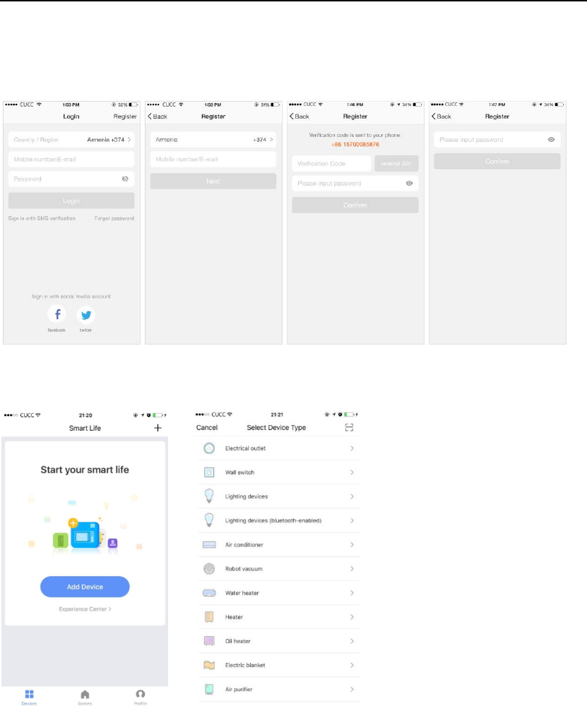 Step 3: Select your country code and Enter your “Smart life” APP Account and