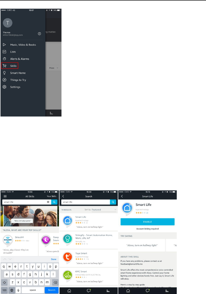 Step 1: Open the” Amazon Alexa”APP,then find the “Skills “button on the menu. Press