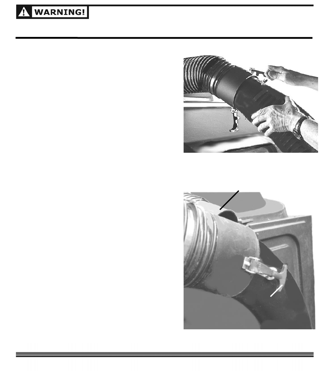 [ ] BLOWER HOSES: Inspect the blower hoses for holes, frayed, worn, kinked, or abraded areas.