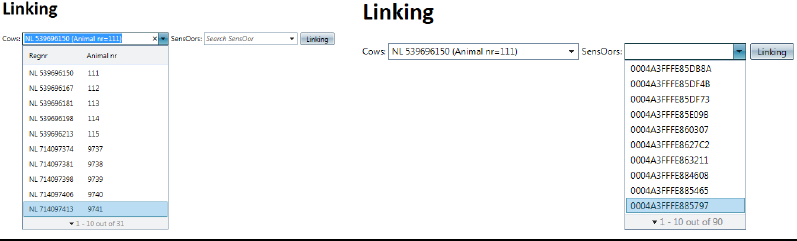 ➢ You can search on Sensor ID, animal number or registration number.