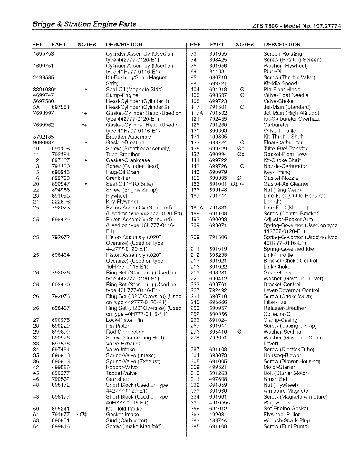 107.27774 (22HP Briggs &Stratton with 50" Mower)