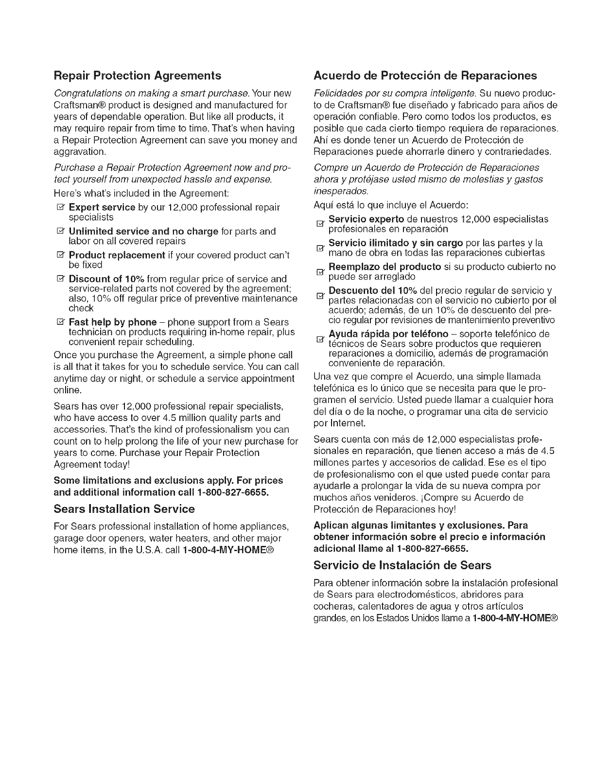 Sears Craftsman Help Line