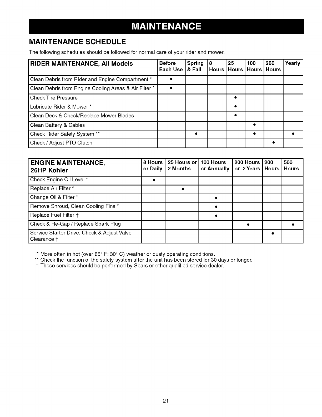 • Standard maintenance servicing, oil changes, or tune-ups.