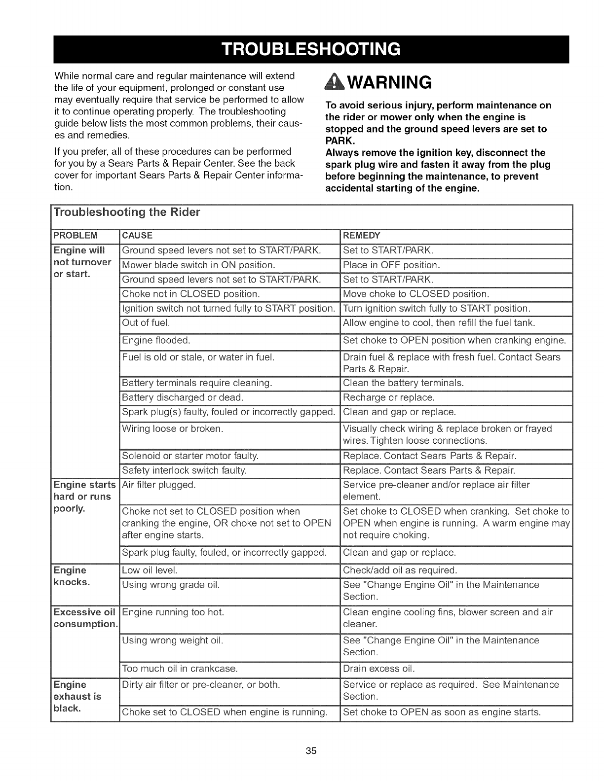 Craftsman 107289930 User Manual ZERO TURN REAR ENGINE RIDER Manuals And Guides L0902462