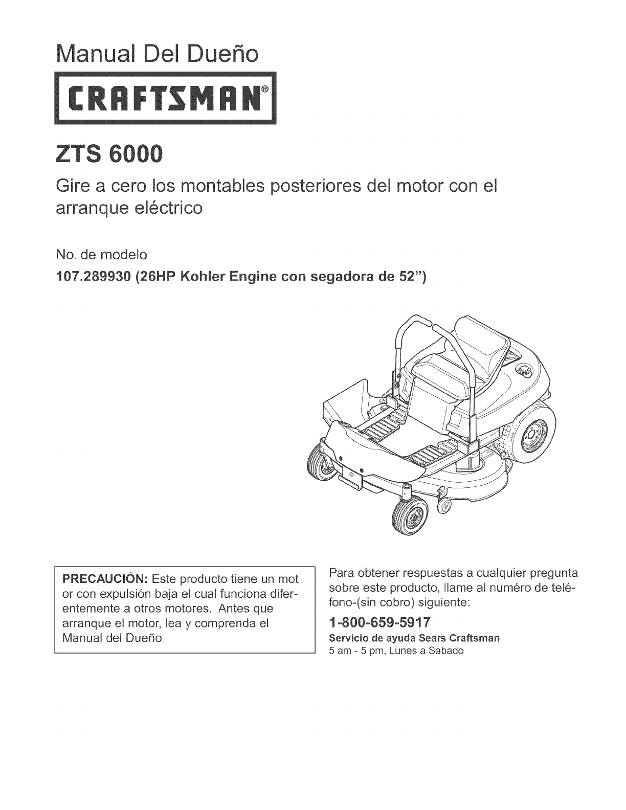 User Manual: Craftsman 107289930 107289930 CRAFTSMAN ZERO TURN REAR ENGINE RIDER - Manuals and Guides View the owners manual for your CRAFTSMAN ZERO TURN REAR ENGINE RIDER #107289930. Home:Lawn & Garden Parts:Craftsman Parts:Craftsman ZERO TURN REAR ENGINE RIDER Manual