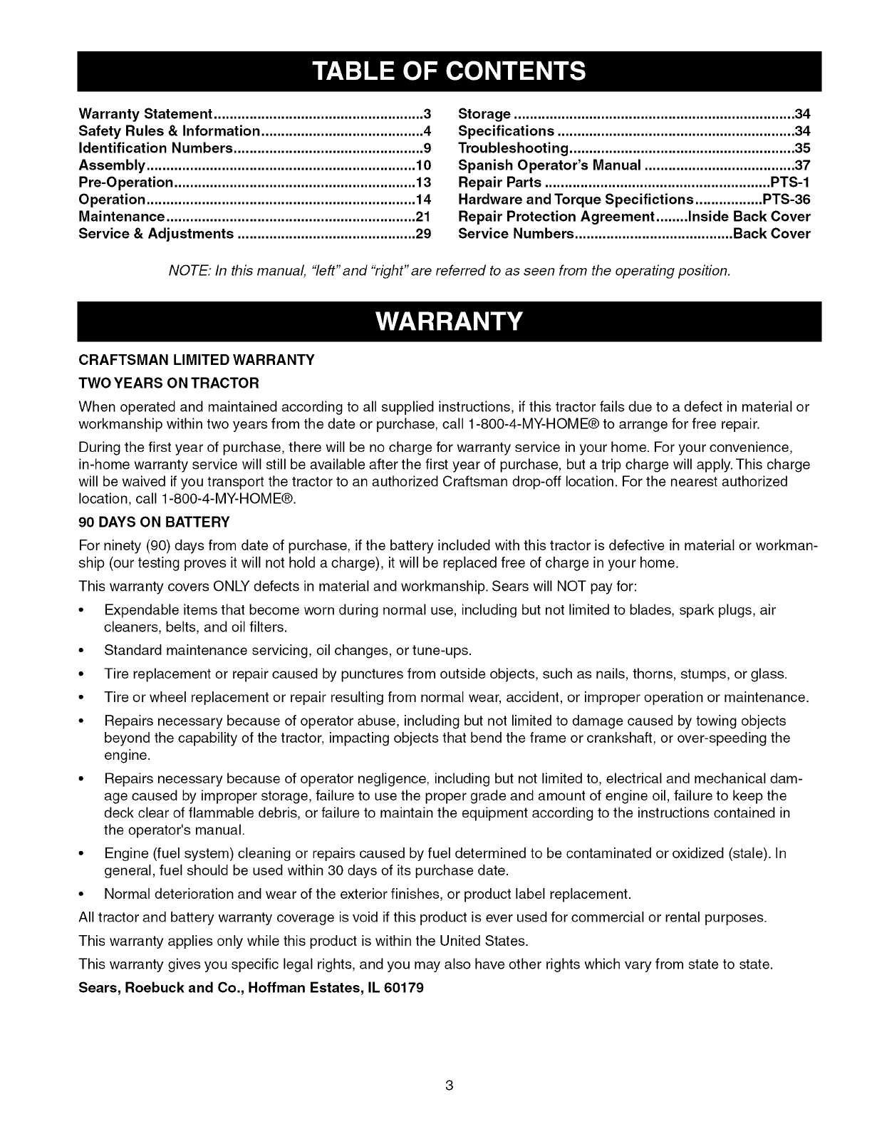 All tractor and battery warranty coverage is void if this product is ever used for commercial or rental purposes.