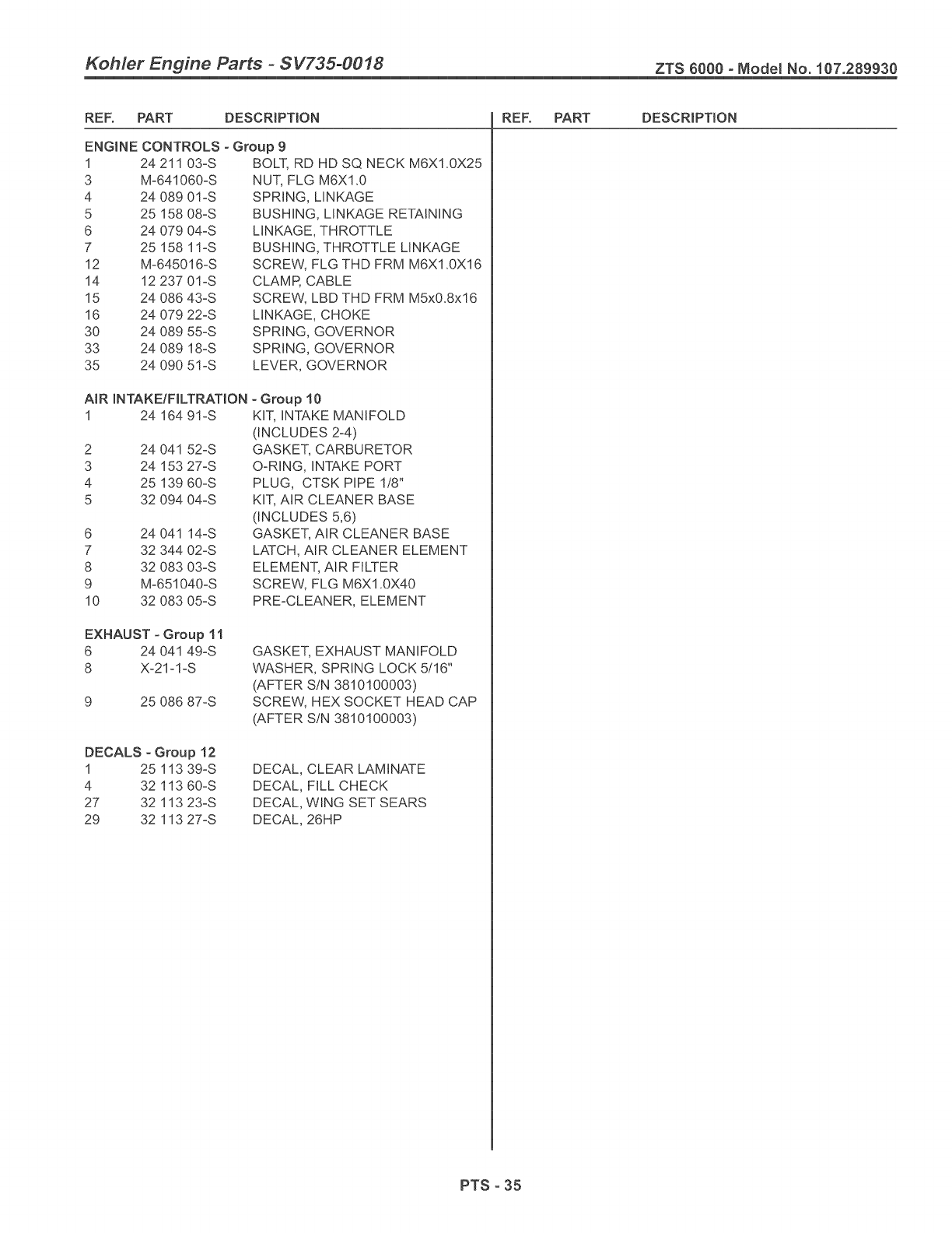 107.289930 (26HP Kohler Engine with 52" Mower}