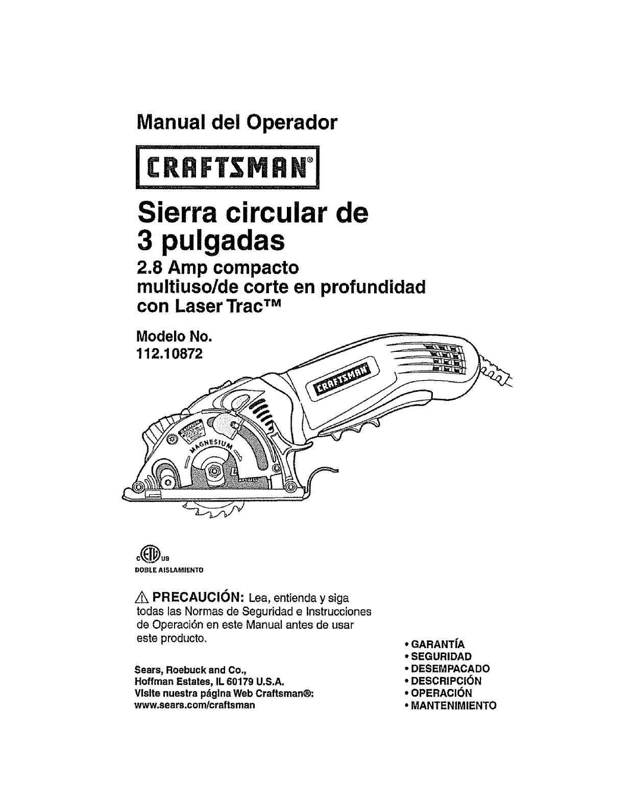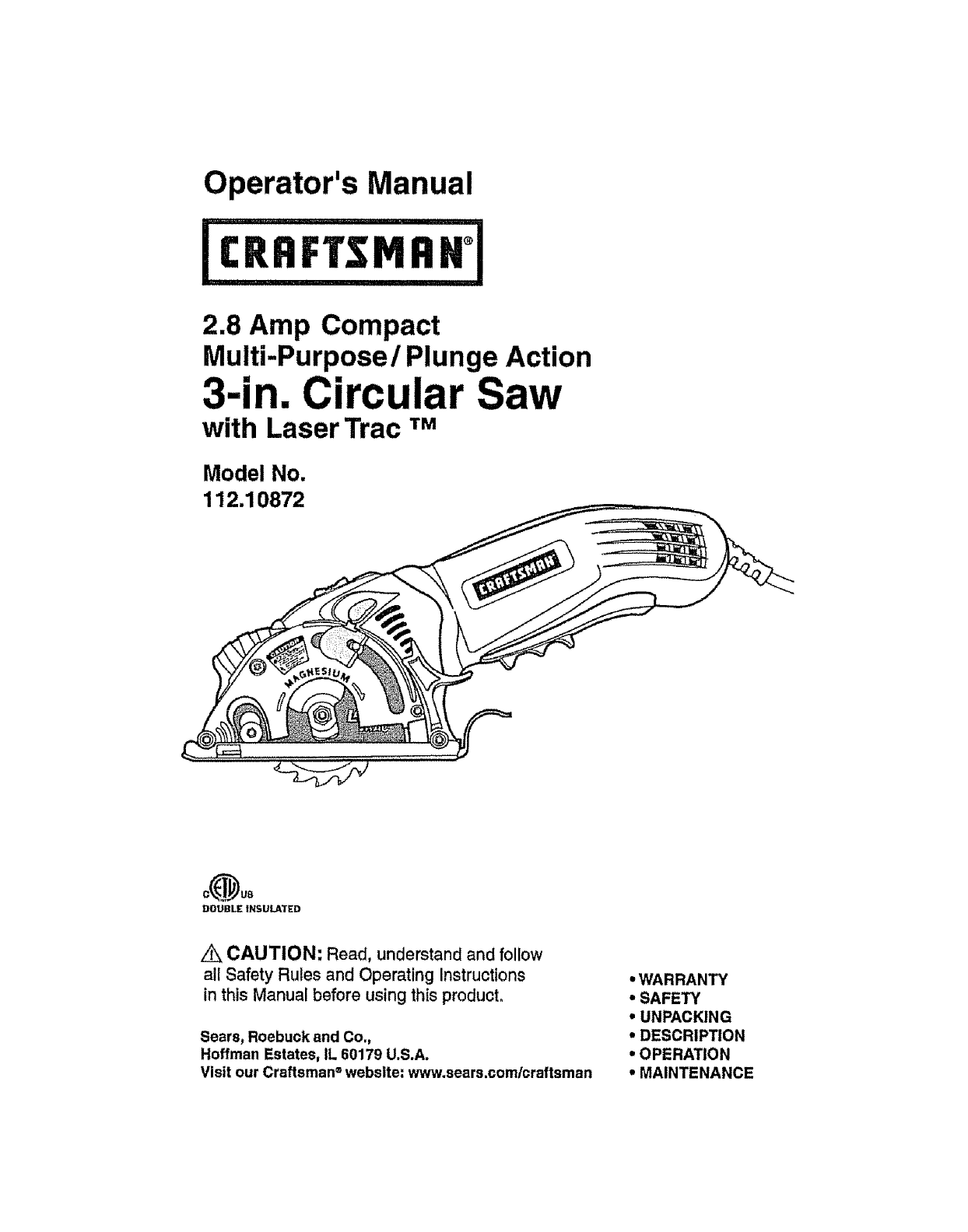 User Manual: Craftsman 11210872 11210872 CRAFTSMAN CIRCULAR SAW - Manuals and Guides View the owners manual for your CRAFTSMAN CIRCULAR SAW #11210872. Home:Tool Parts:Craftsman Parts:Craftsman CIRCULAR SAW Manual