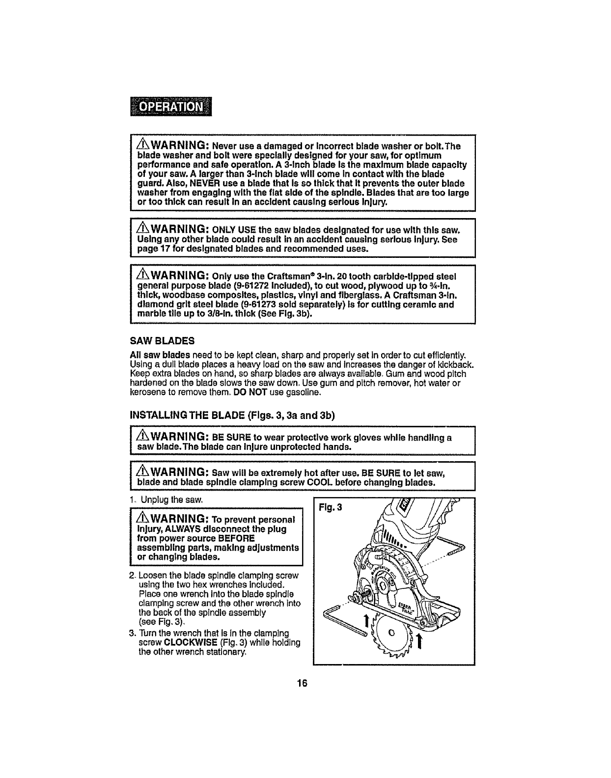 CRAFTSMAN Saw Circular Manual L0802124 CRAFTSMAN Saw Circular Owner's Manual, CRAFTSMAN Saw Circular installation guides