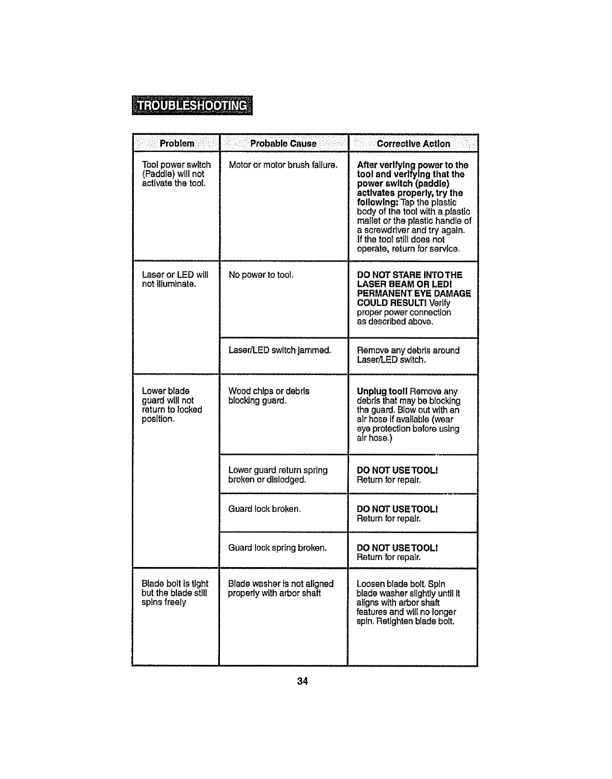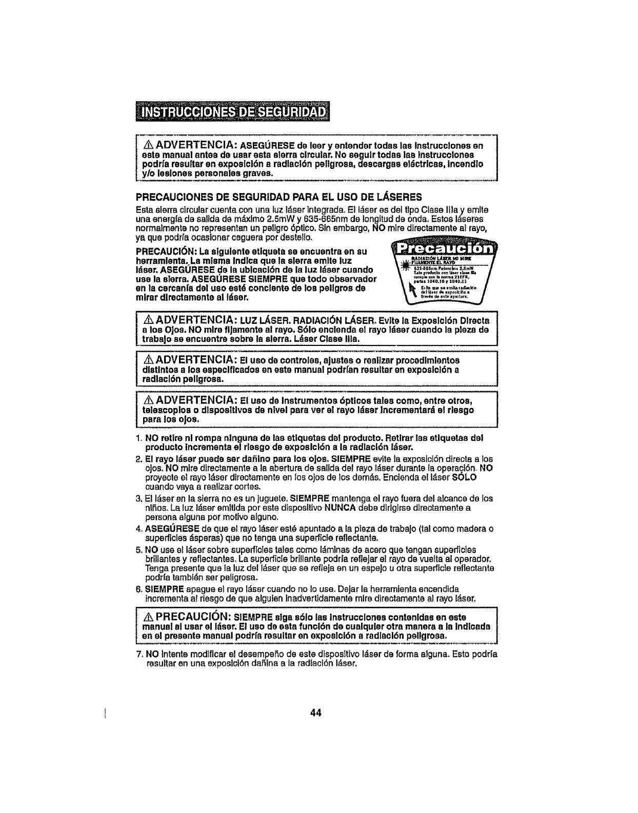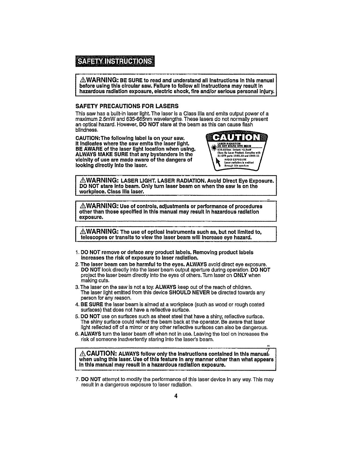 This saw has a built-in laser light.The laseris aClassIlia and emits outputpower of a