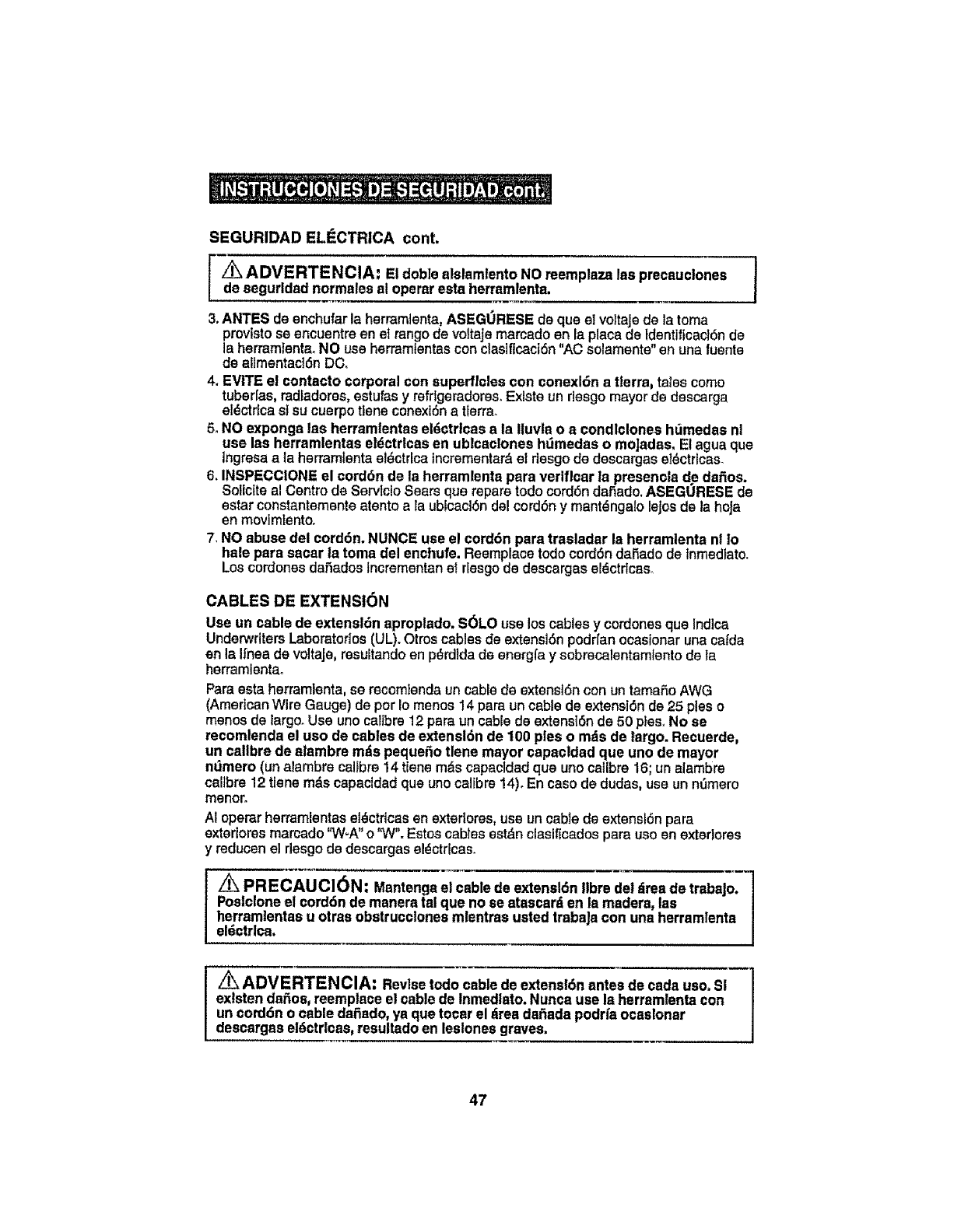 AWARNING: BE SURE to read and understand all safety instructions in this