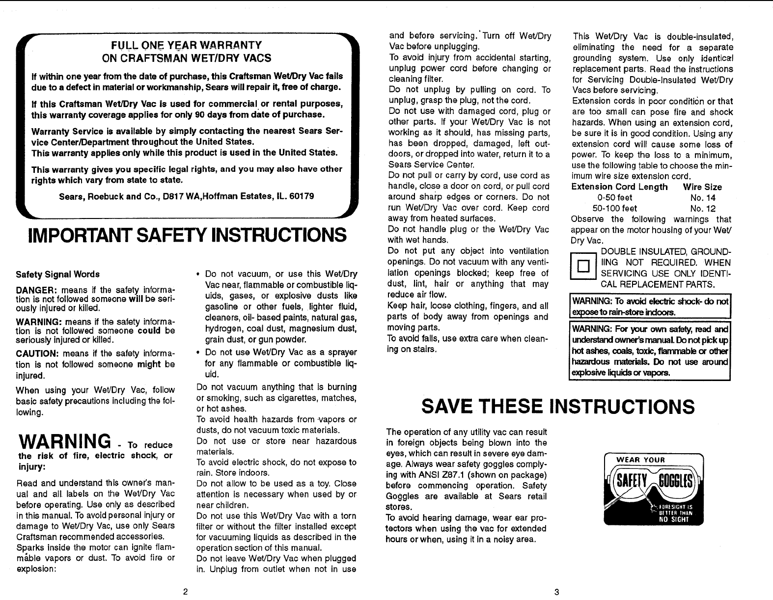 Craftsman 113177311 User Manual WET/DRY VAC Manuals And Guides L0909159
