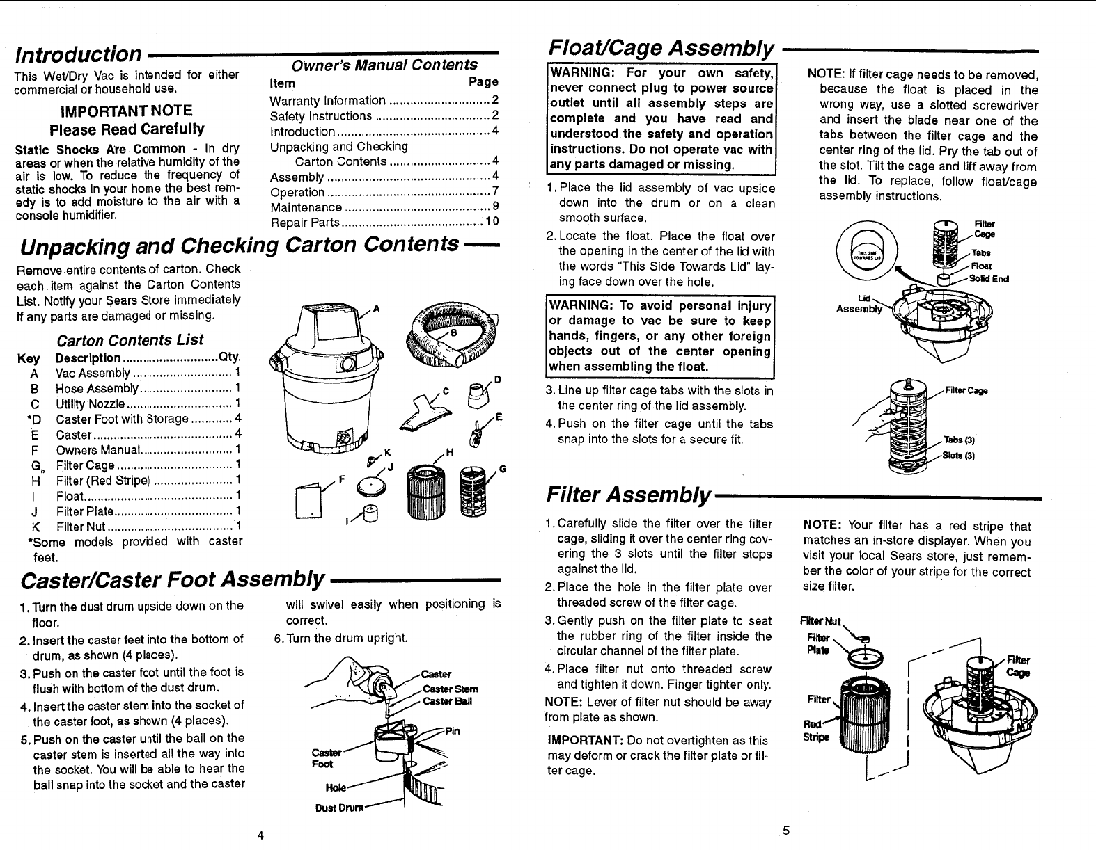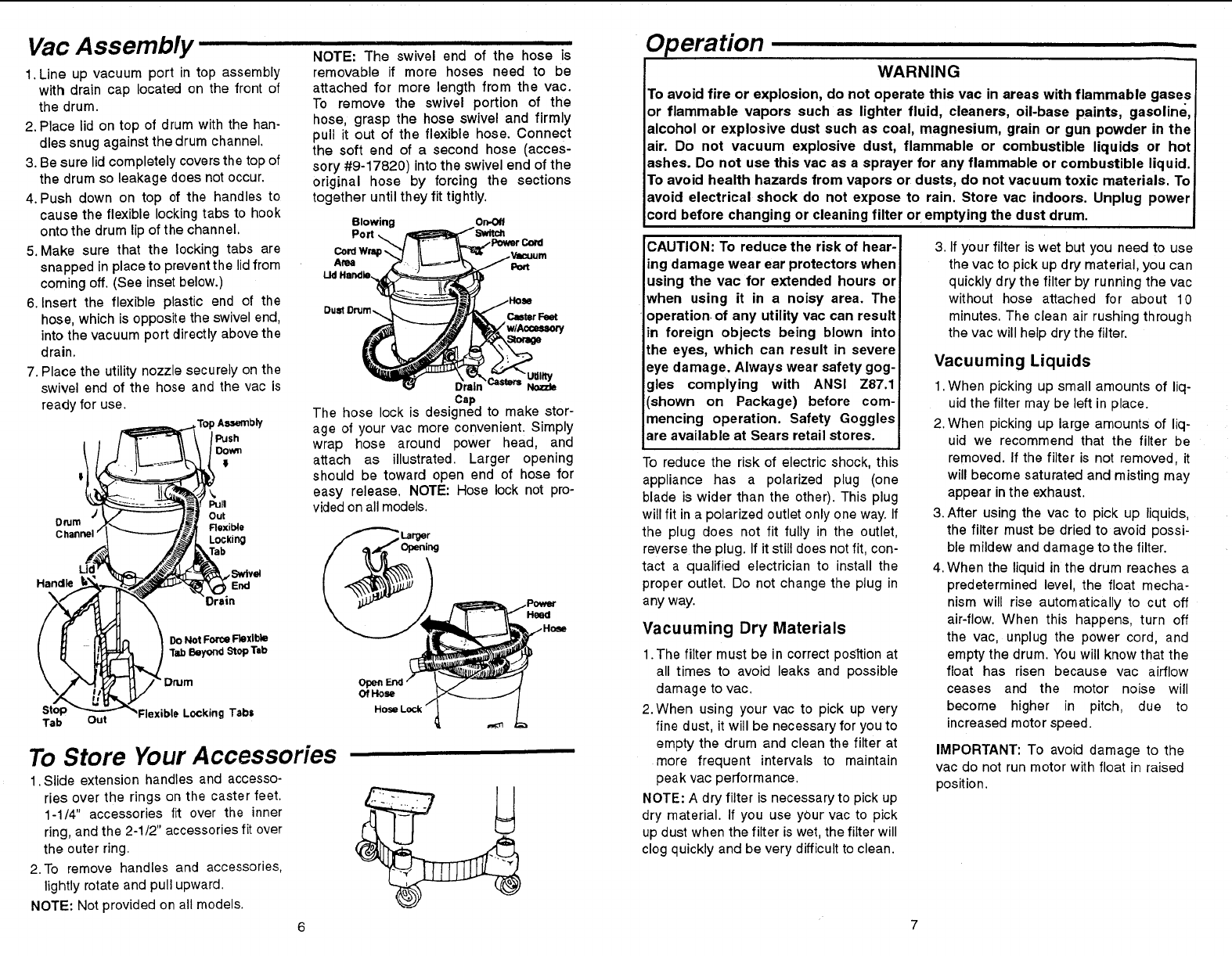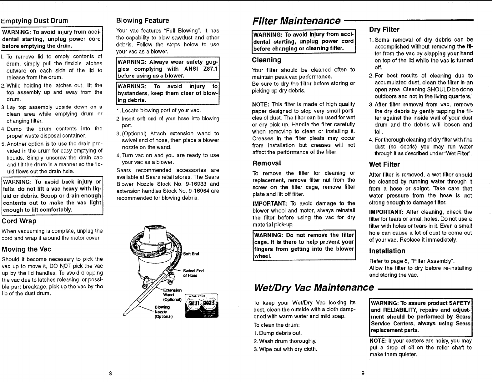 damage to Wet/Dry Vac, use only Sears