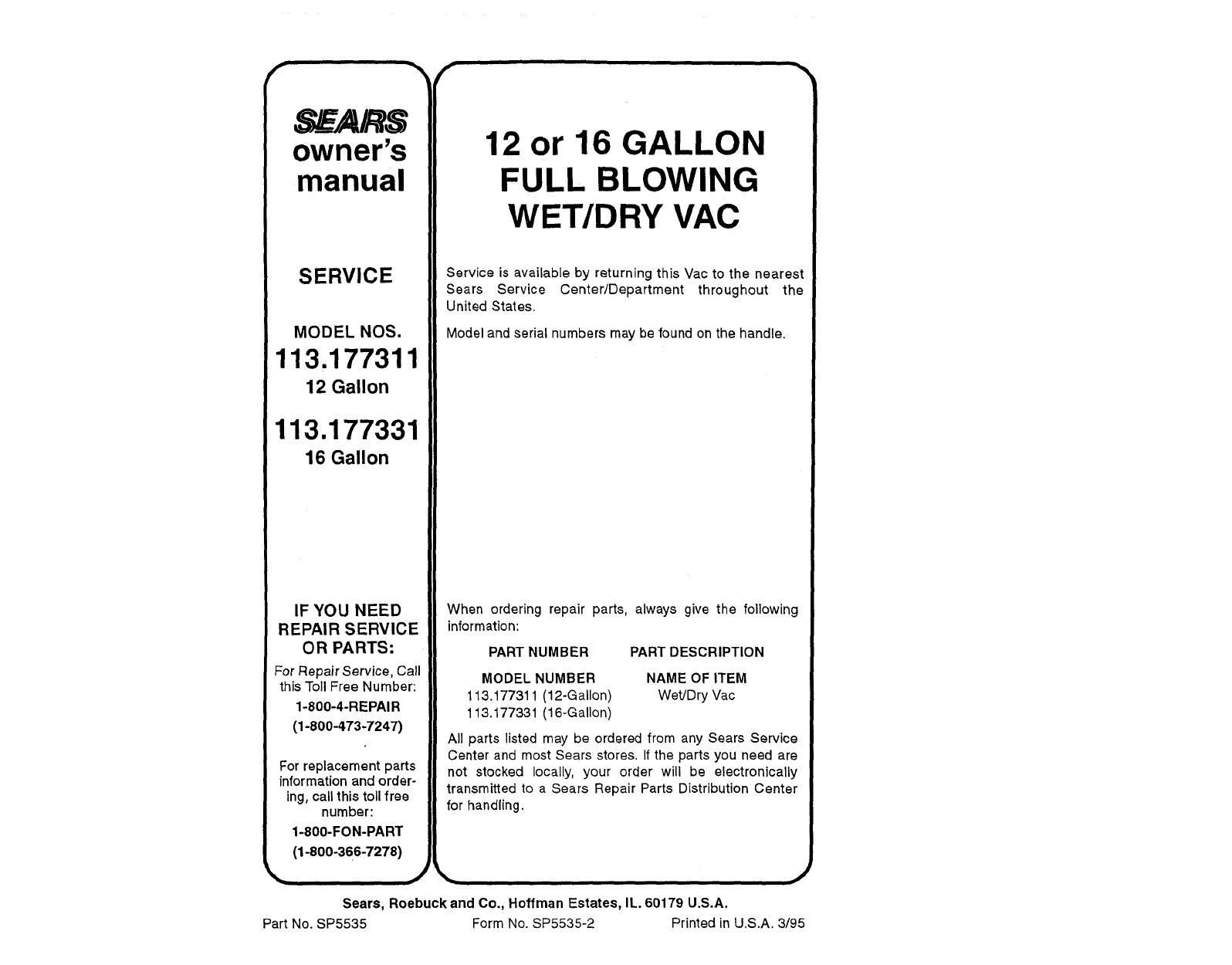 Form No. SP5535-2 Printed in U.S.A. 3/95