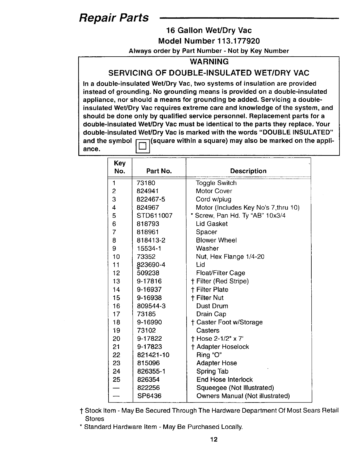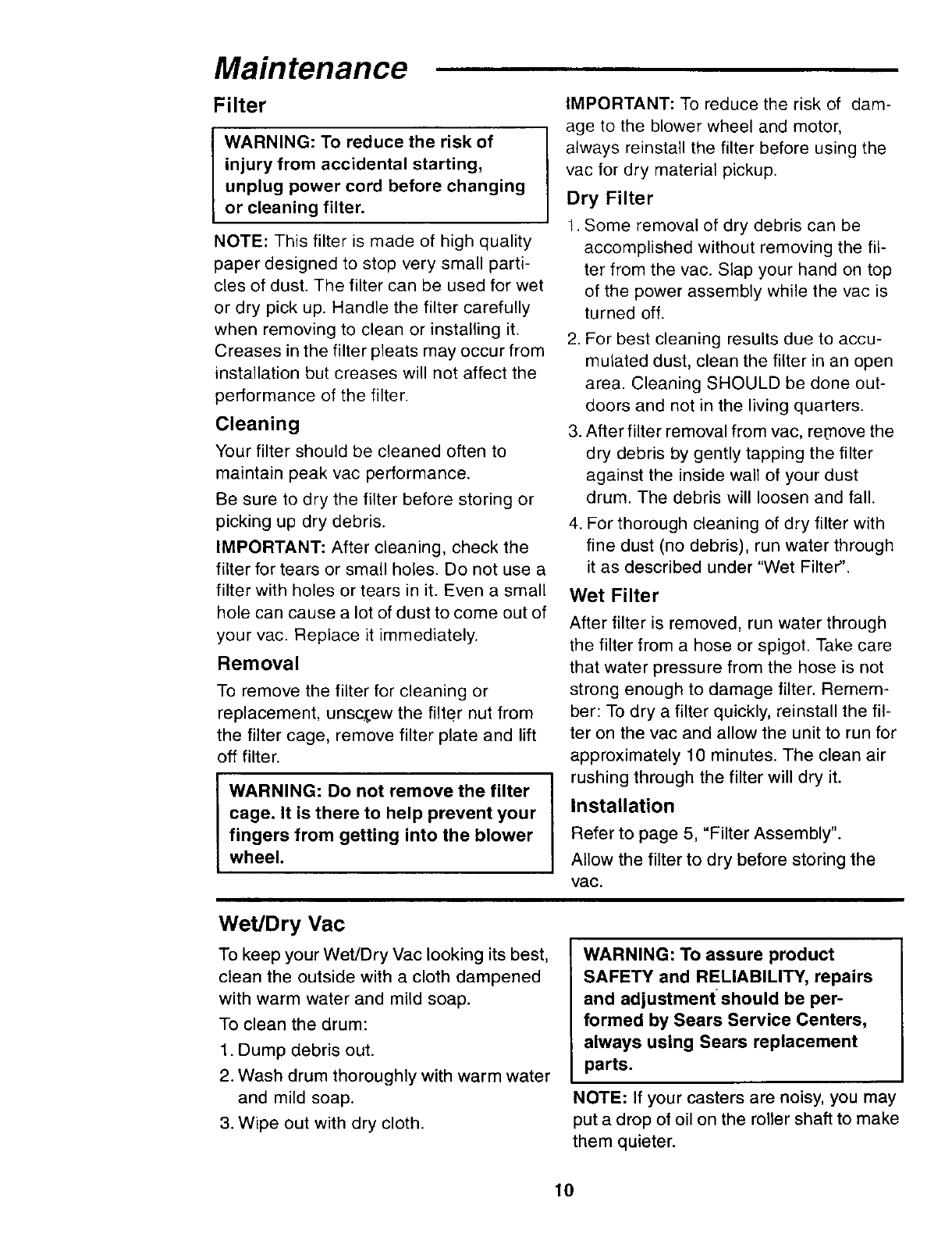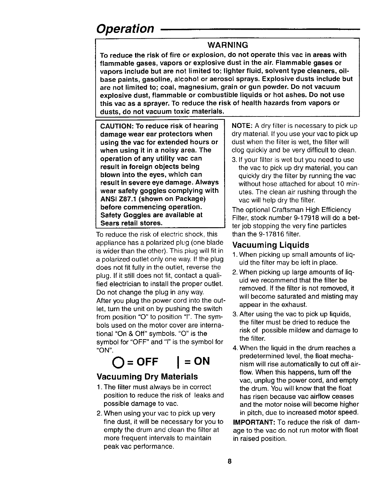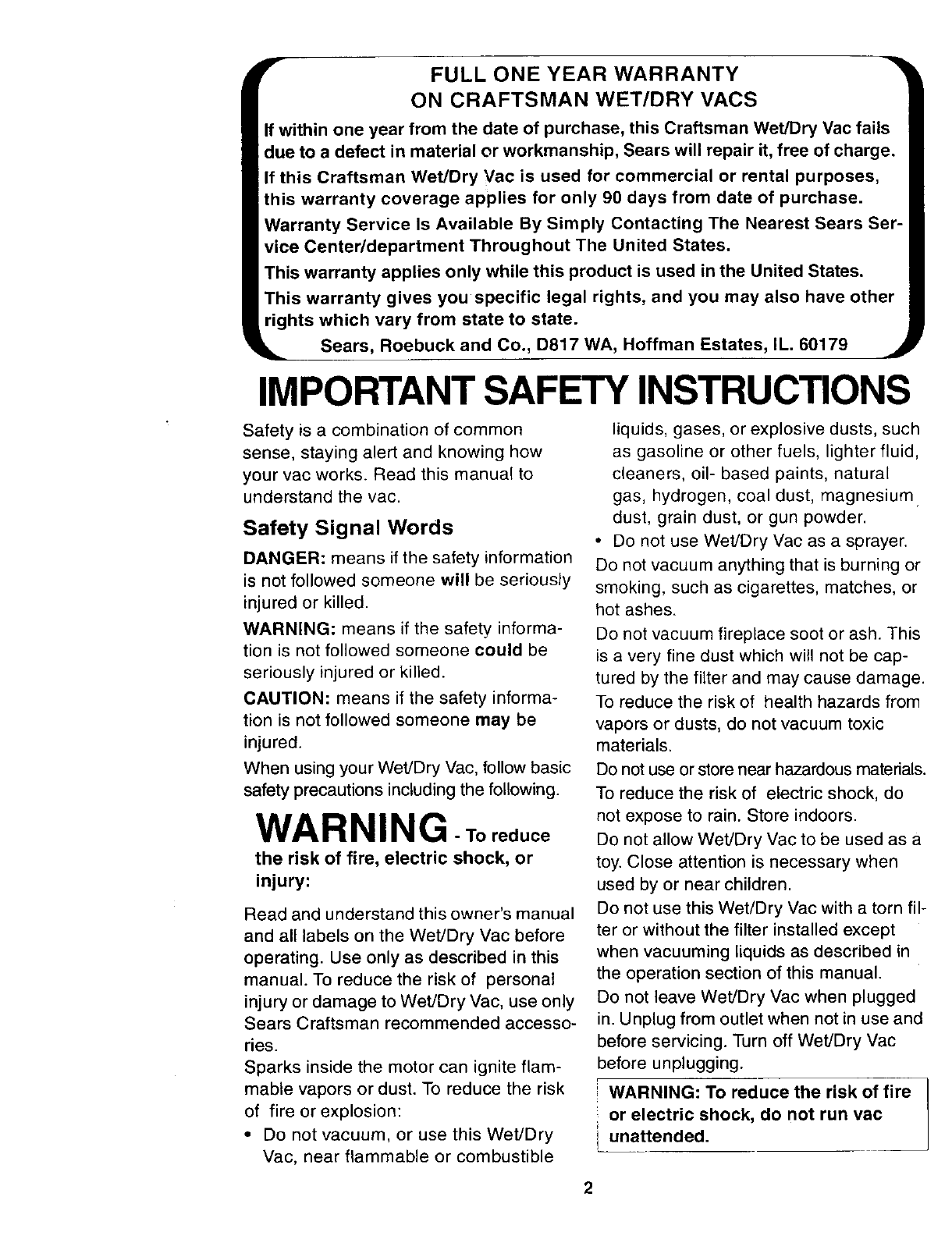 Craftsman 113177920 User Manual 16 WET/DRY VAC Manuals And Guides L0308001