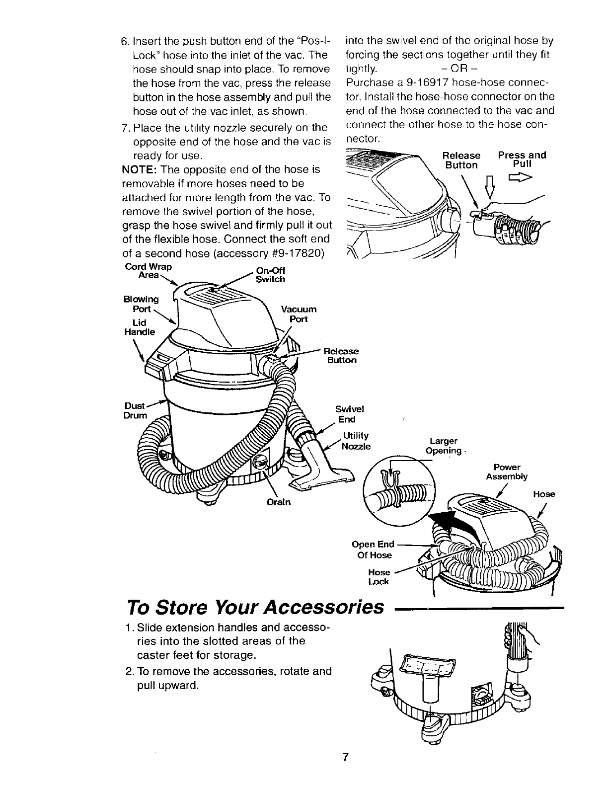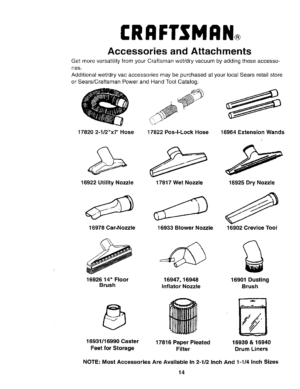 Additional wet/dry vac accessories may be purchased at your local Sears retail store