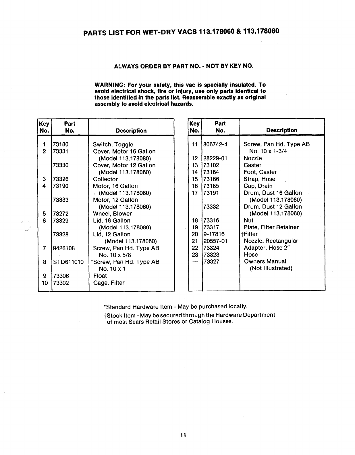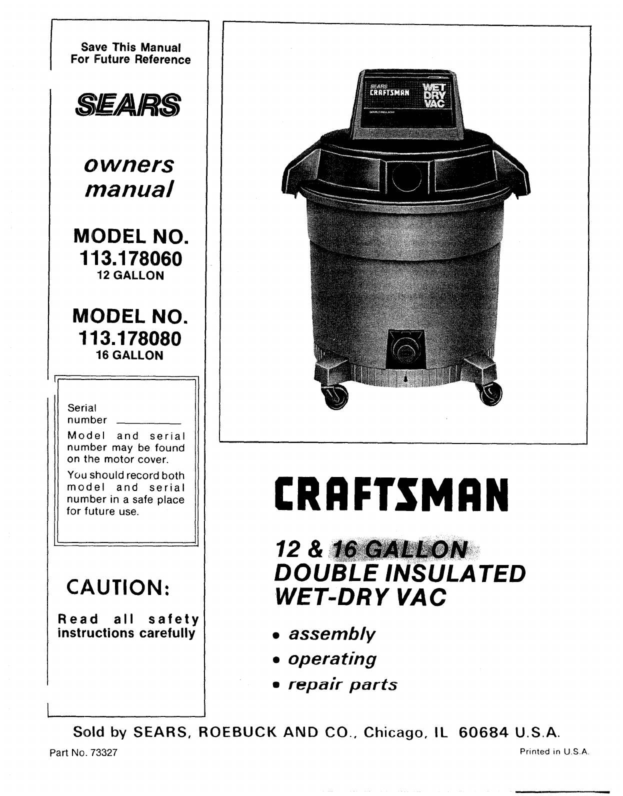 User Manual: Craftsman 113178060 113178060 CRAFTSMAN WET-DRY VAC - Manuals and Guides View the owners manual for your CRAFTSMAN WET-DRY VAC #113178060. Home:Vacuums & Floor Care Parts:Craftsman Parts:Craftsman WET-DRY VAC Manual