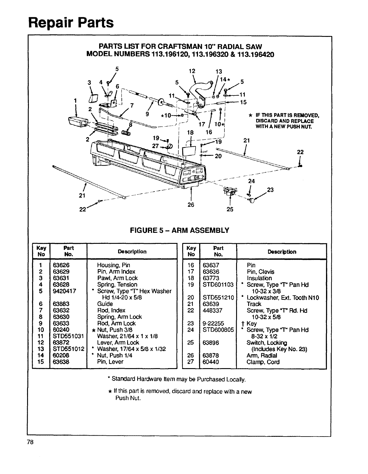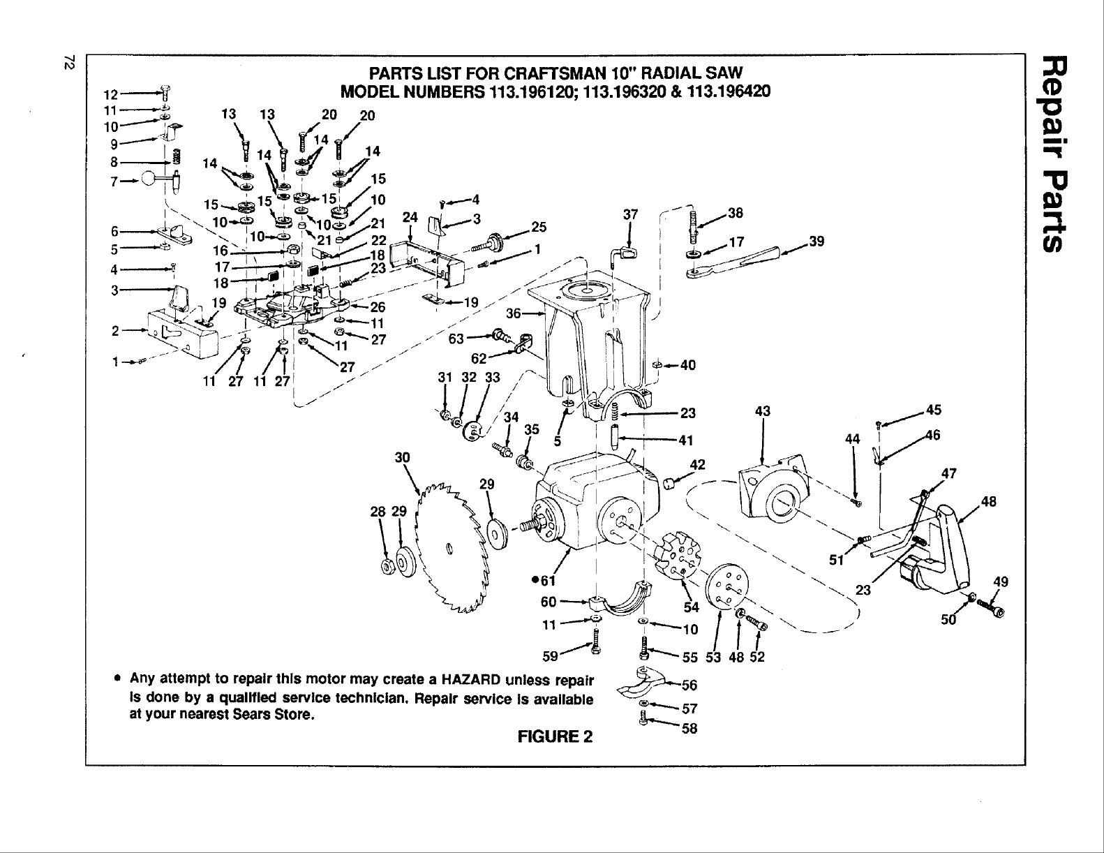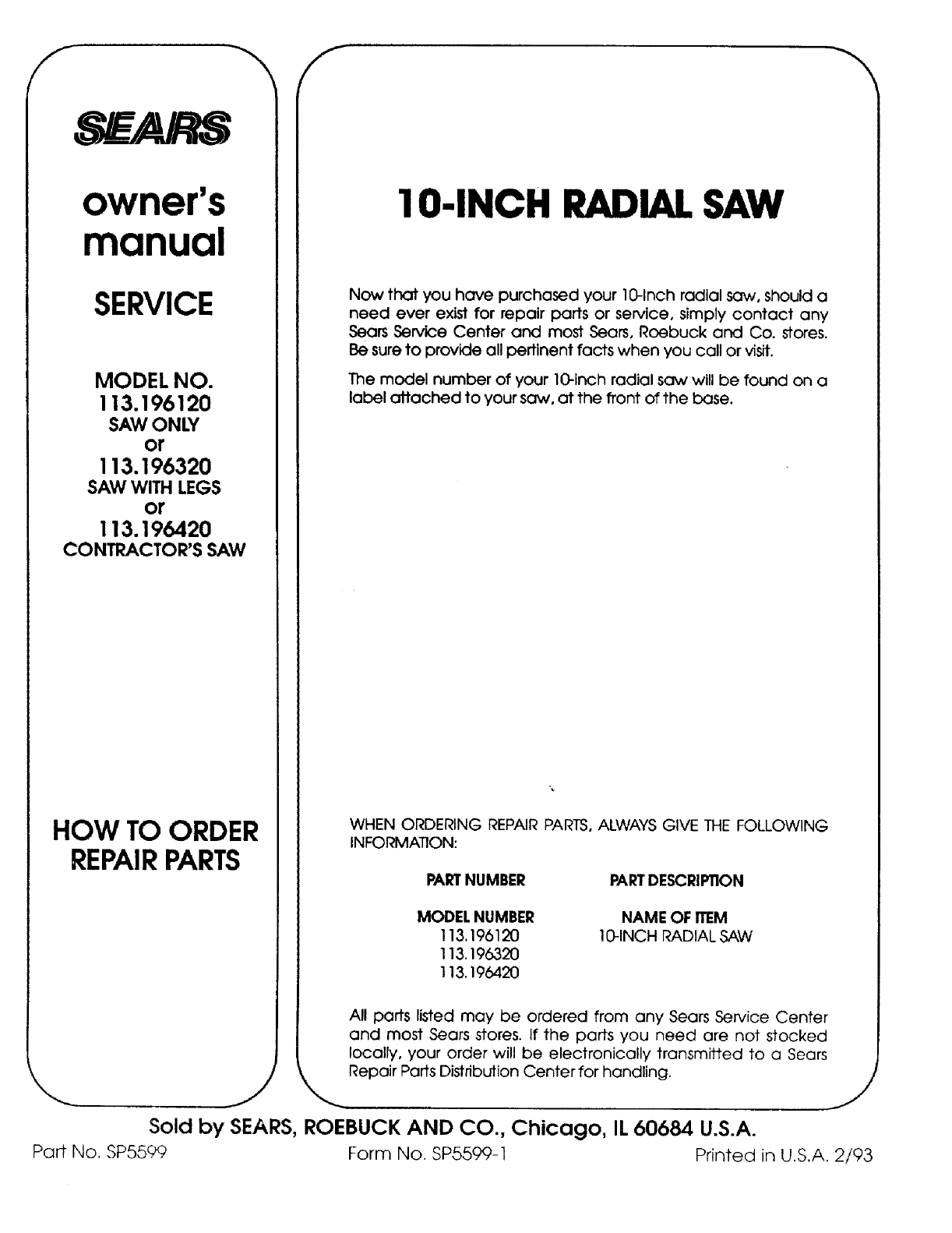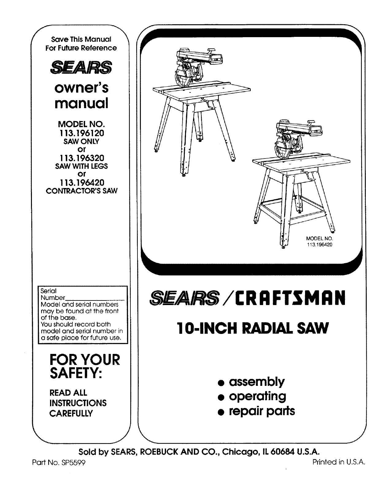 User Manual: Craftsman 113196120 113196120 CRAFTSMAN RADIAL SAW - Manuals and Guides View the owners manual for your CRAFTSMAN RADIAL SAW #113196120. Home:Tool Parts:Craftsman Parts:Craftsman RADIAL SAW Manual