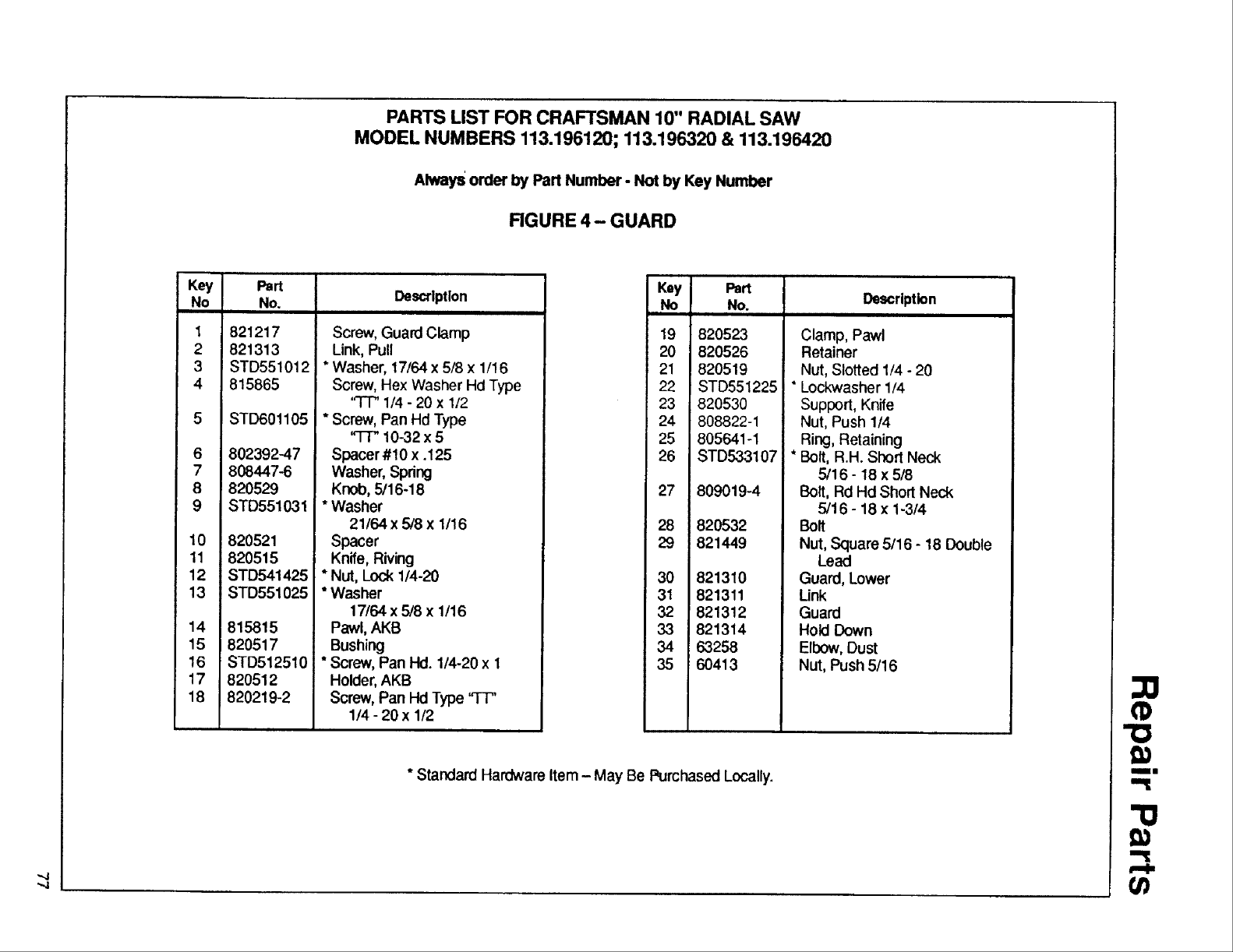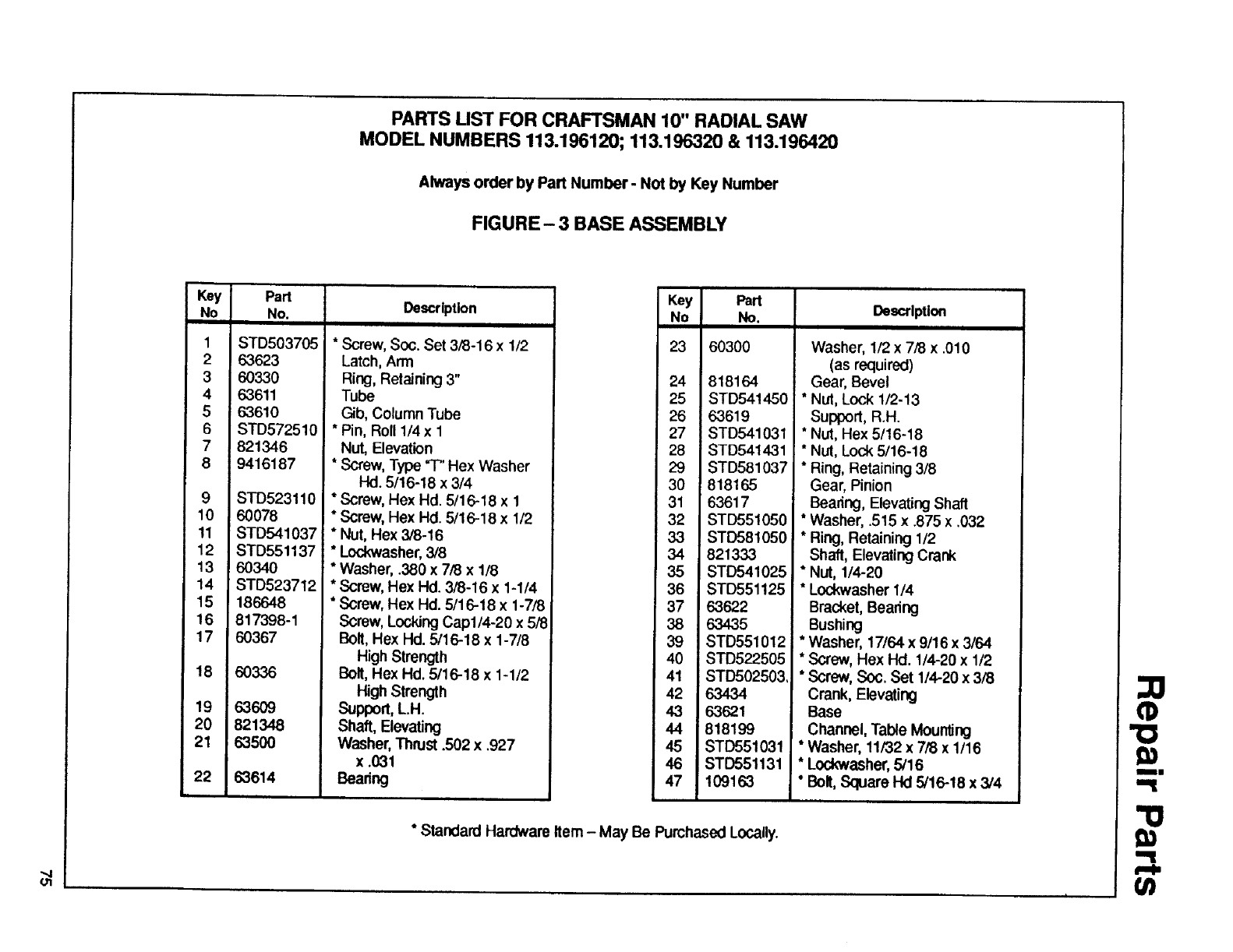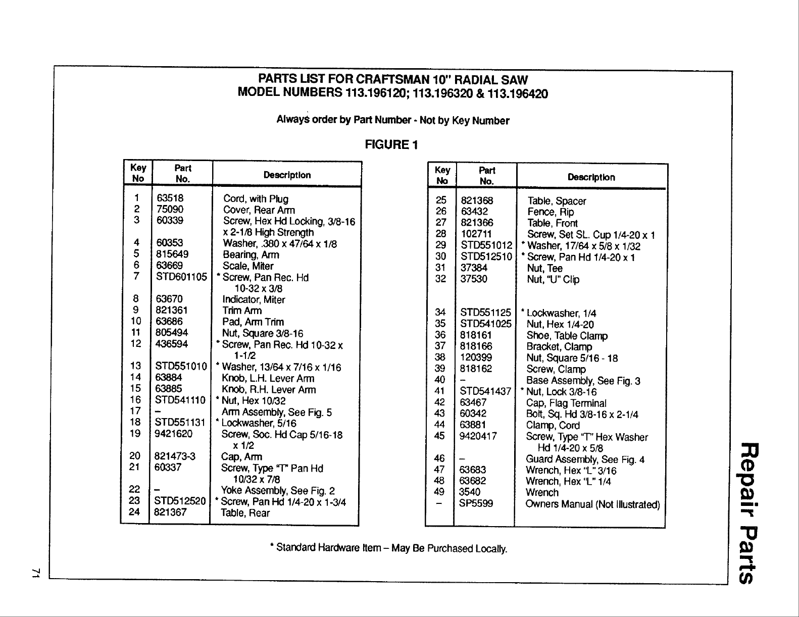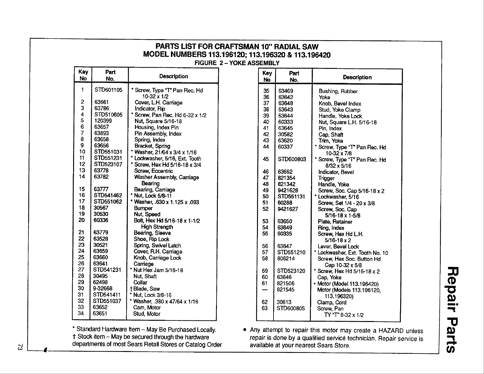 User Manual: Craftsman 113196120 113196120 CRAFTSMAN RADIAL SAW - Manuals and Guides View the owners manual for your CRAFTSMAN RADIAL SAW #113196120. Home:Tool Parts:Craftsman Parts:Craftsman RADIAL SAW Manual