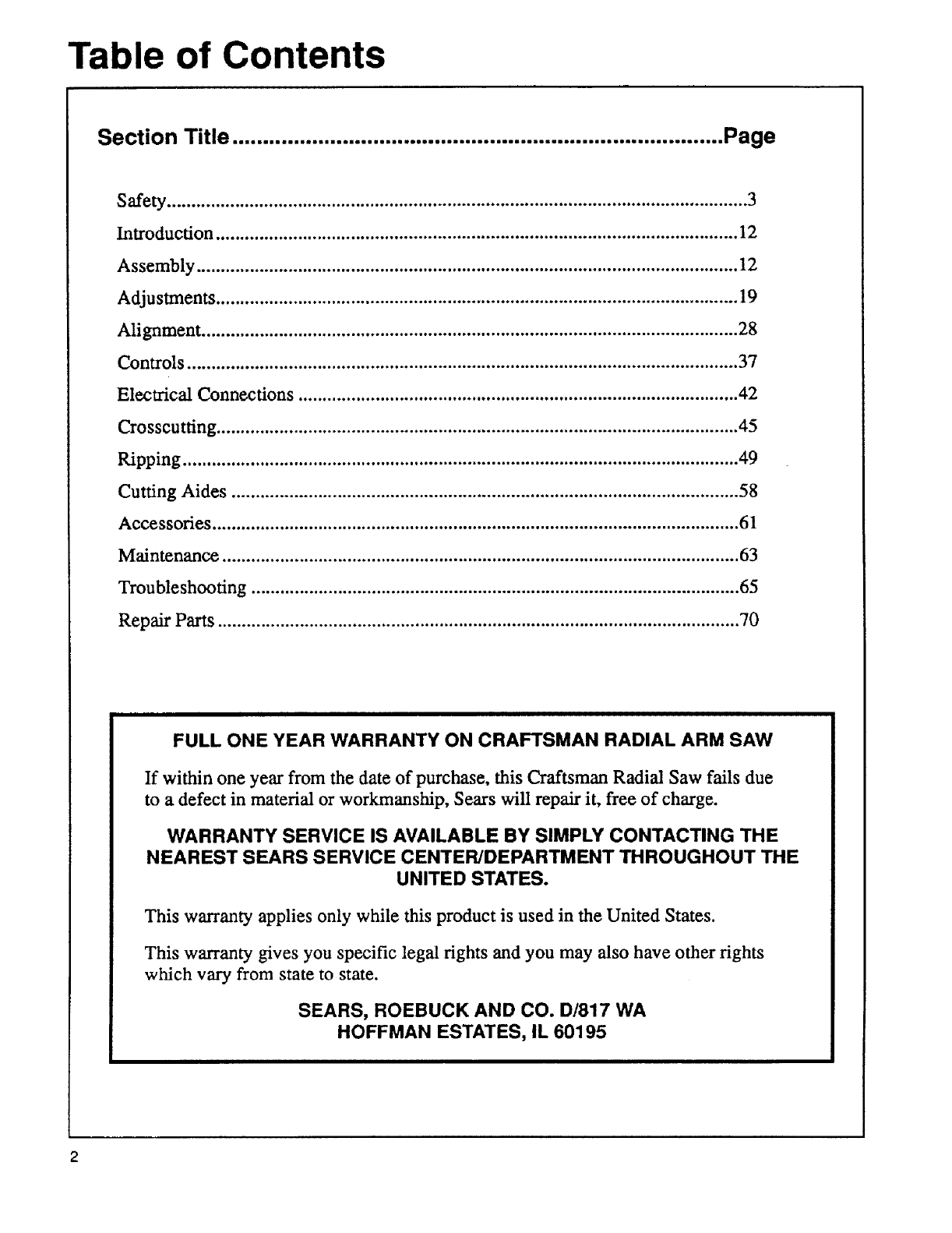 FULL ONE YEAR WARRANTY ON CRAFTSMAN RADIAL ARM SAW