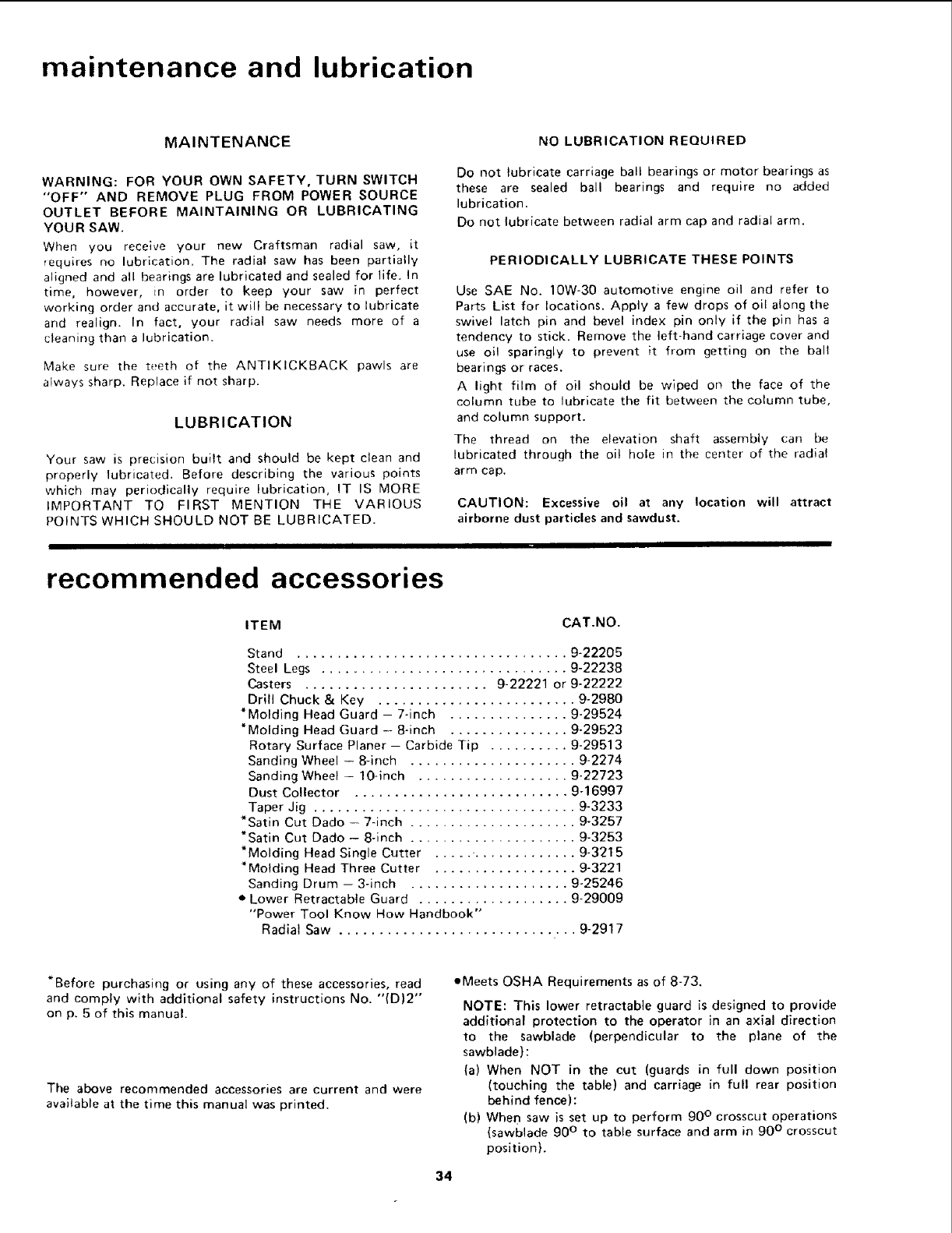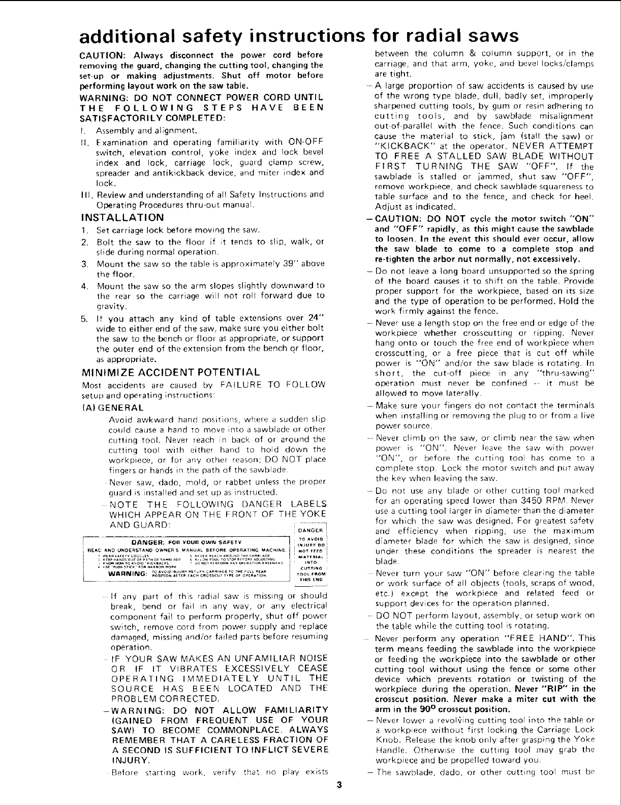 CRAFTSMAN Saw Radial Manual L0710168 CRAFTSMAN Saw Radial Owner's Manual, CRAFTSMAN Saw Radial installation guides