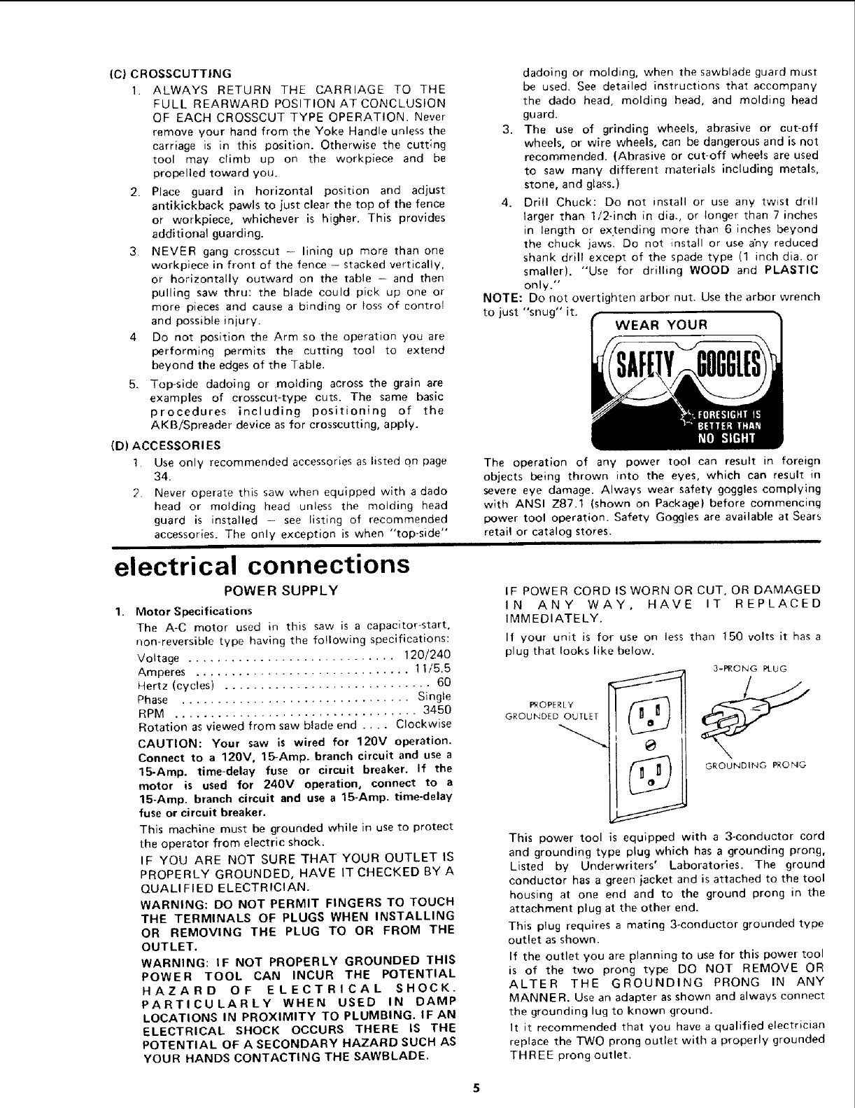 cord and a 3-prong grounding type plug to fit the