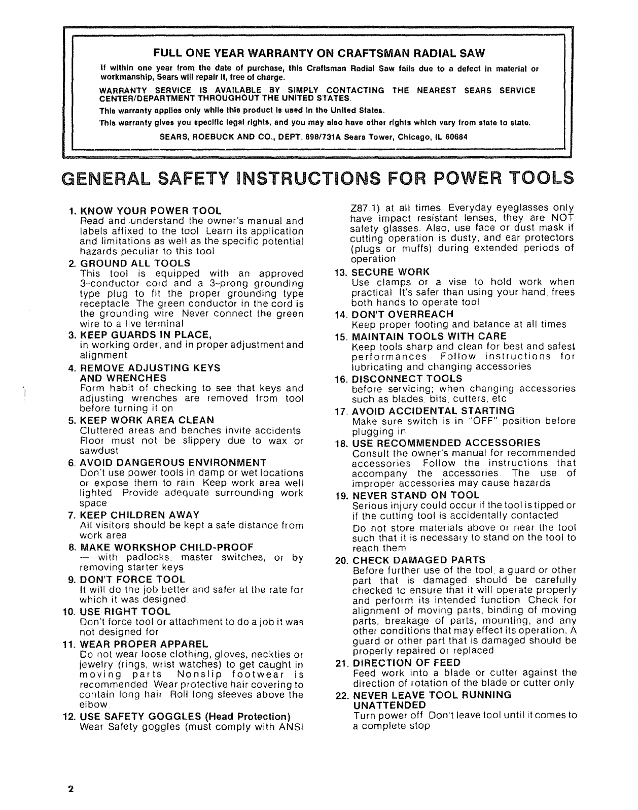 FULL ONE YEAR WARRANTY ON CRAFTSMAN RADIAL SAW