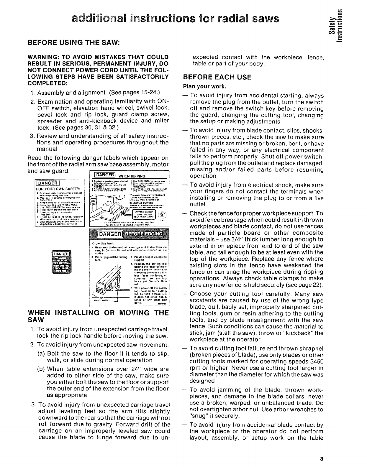 CRAFTSMAN Saw Radial Manual L0810360 CRAFTSMAN Saw Radial Owner's Manual, CRAFTSMAN Saw Radial installation guides