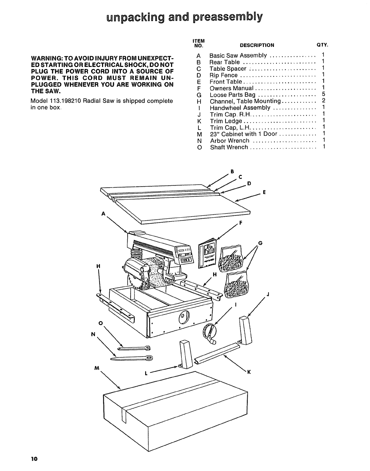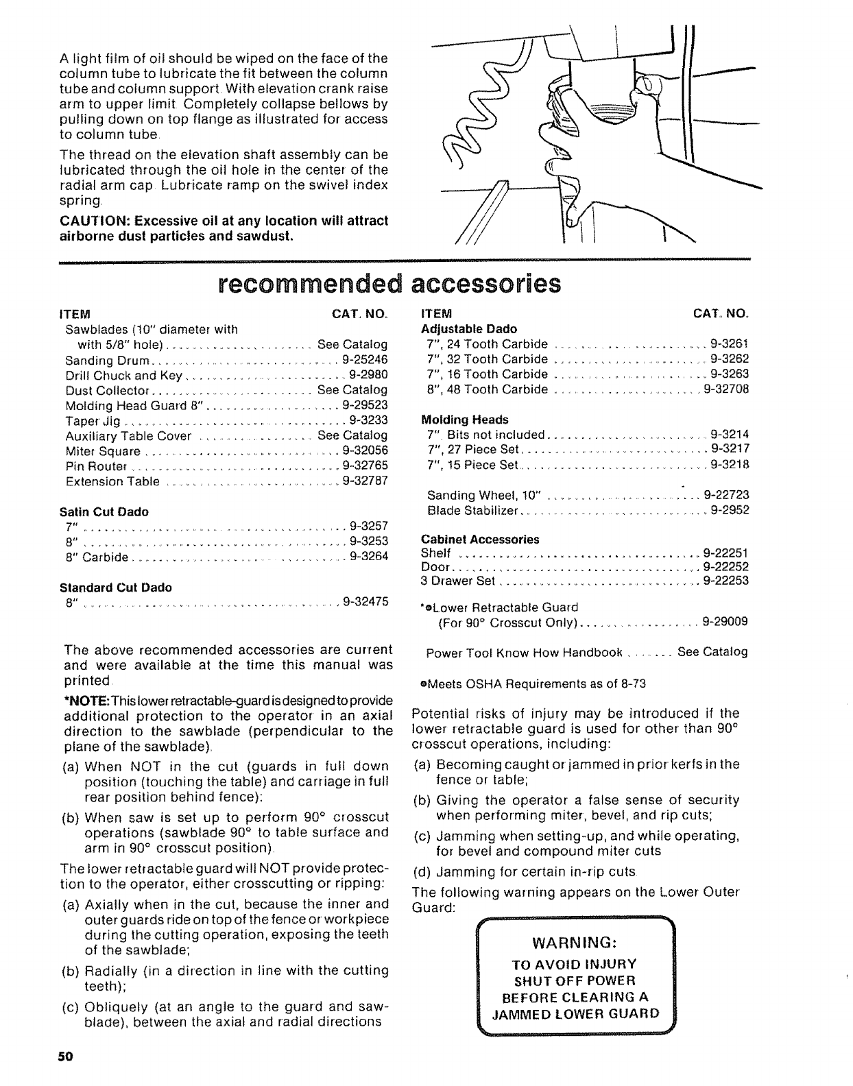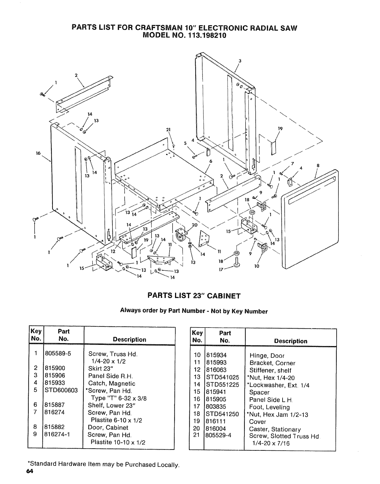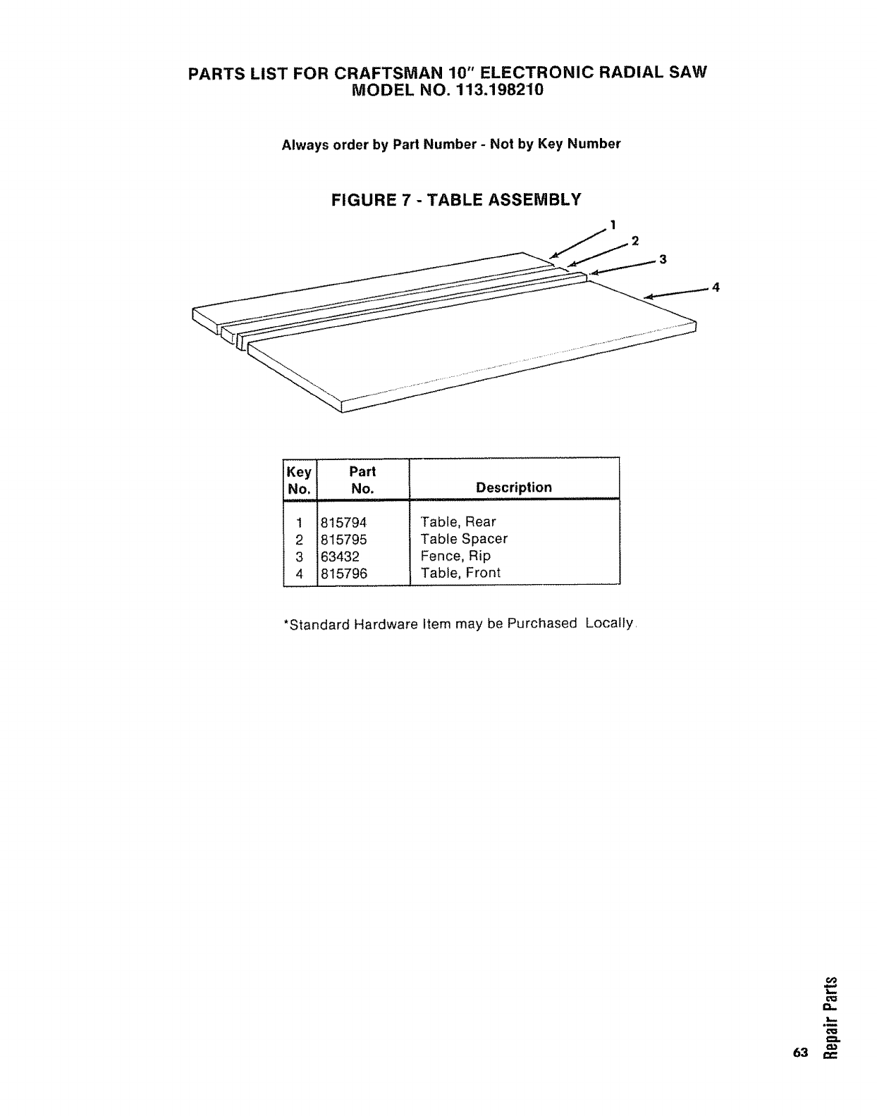 PARTS LiST FOR CRAFTSMAN 10" ELECTRONIC RADIAL SAW