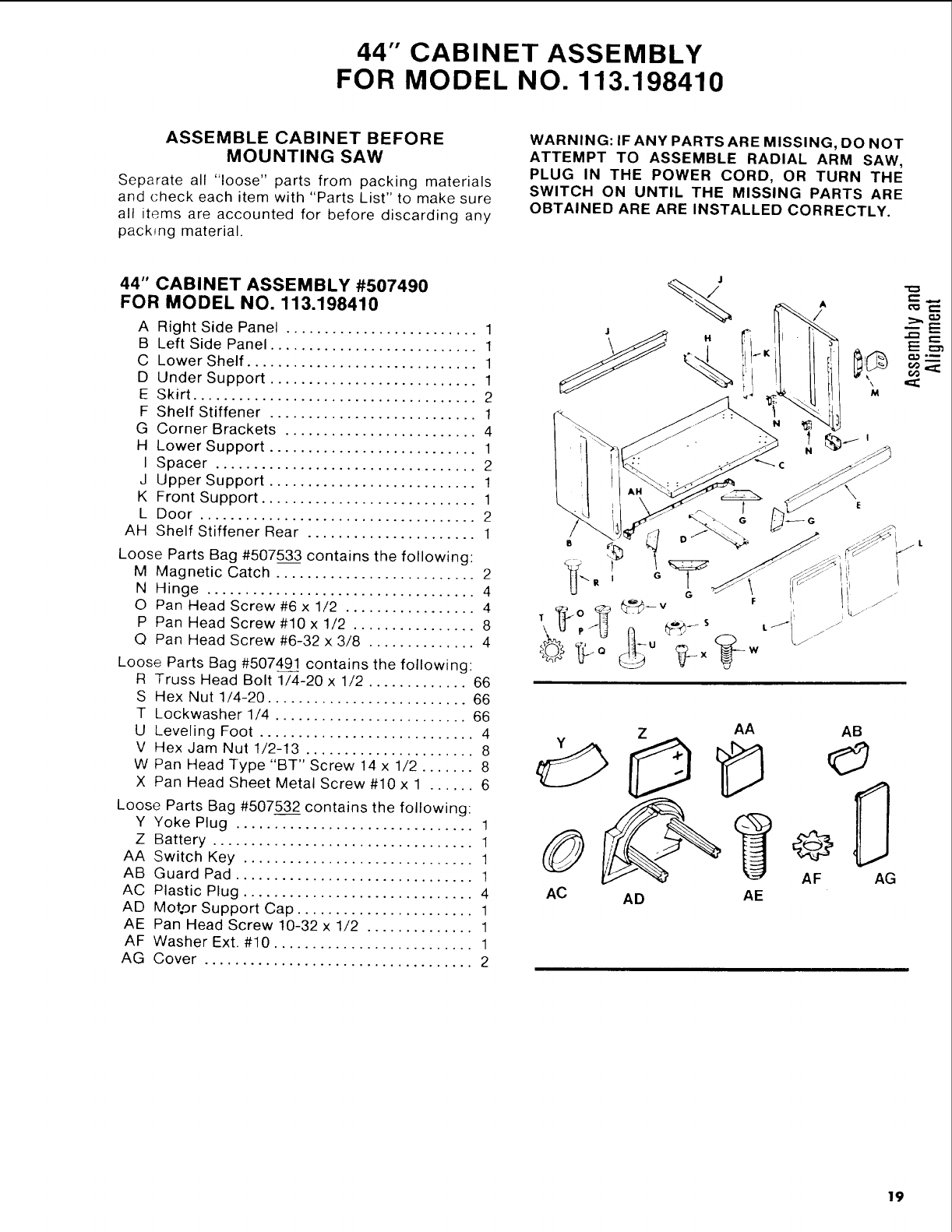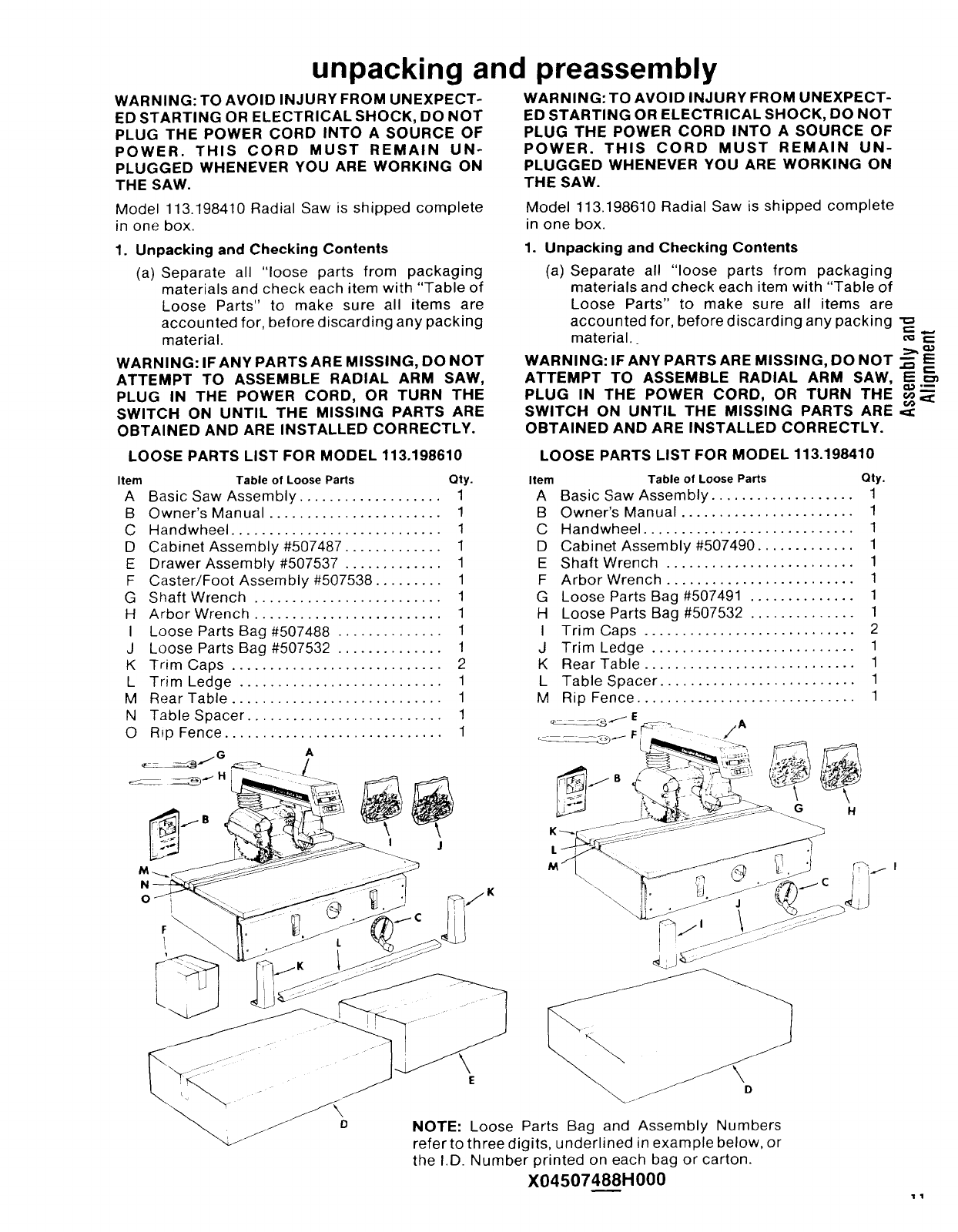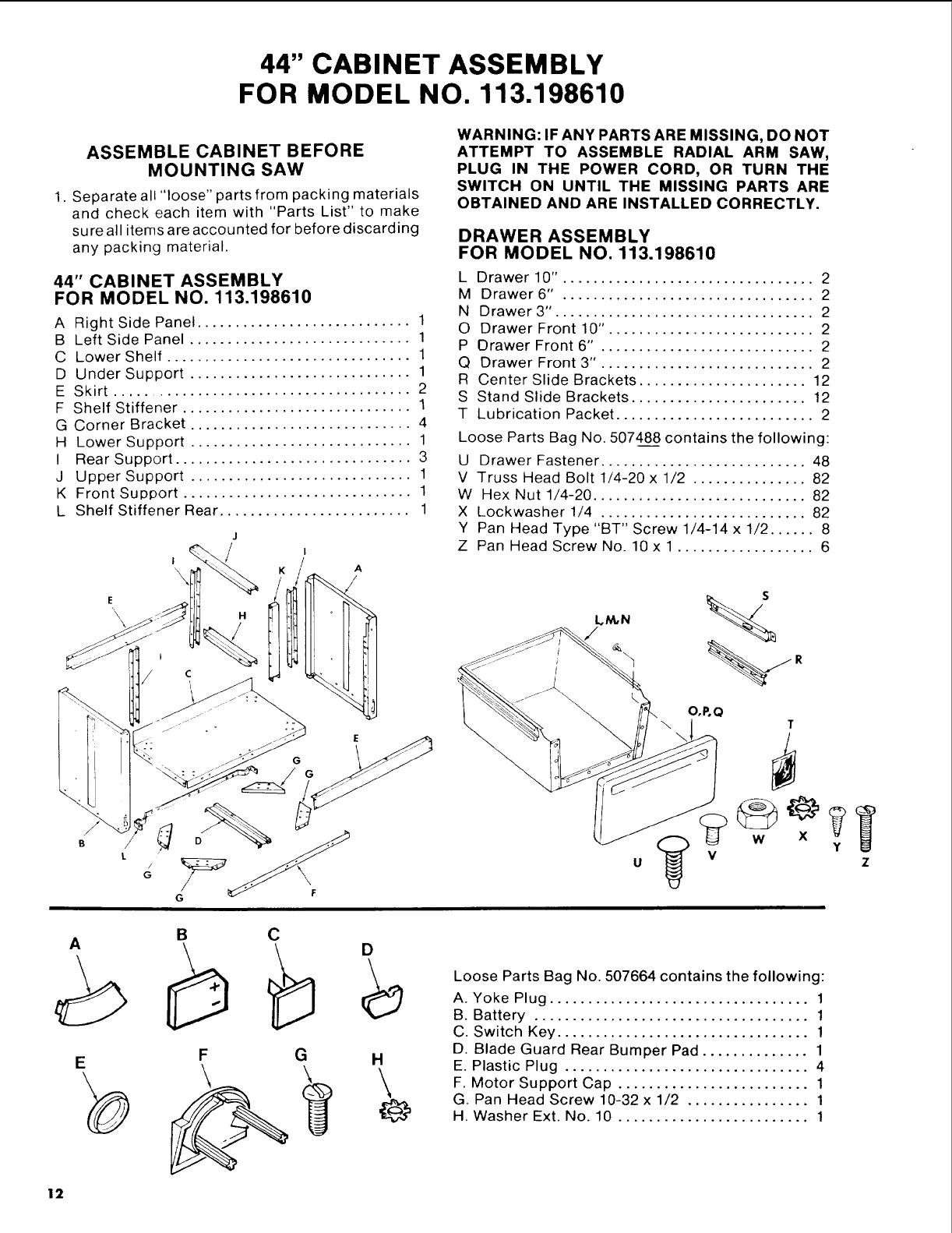 MODEL NOS. 113.198410 and 113,198610