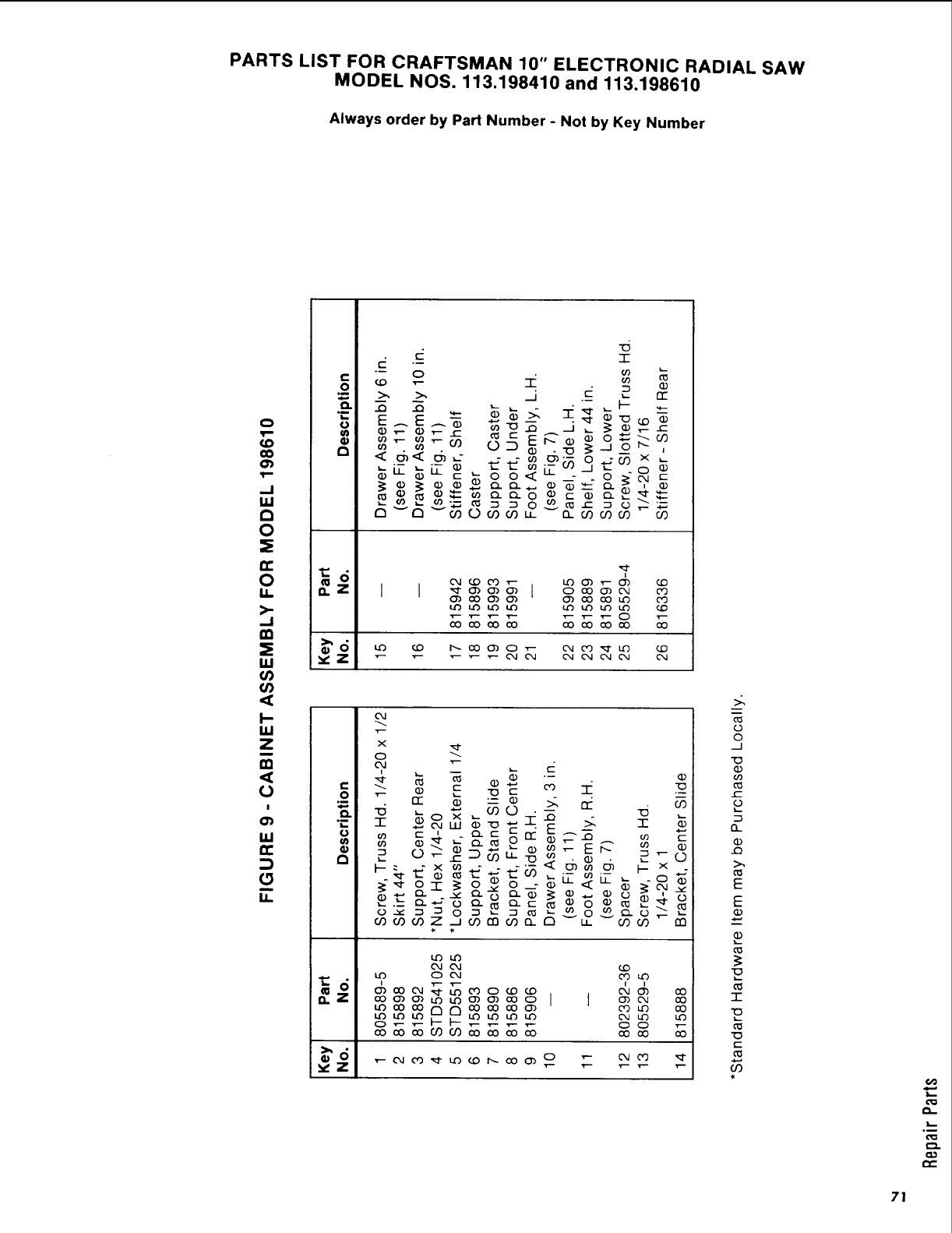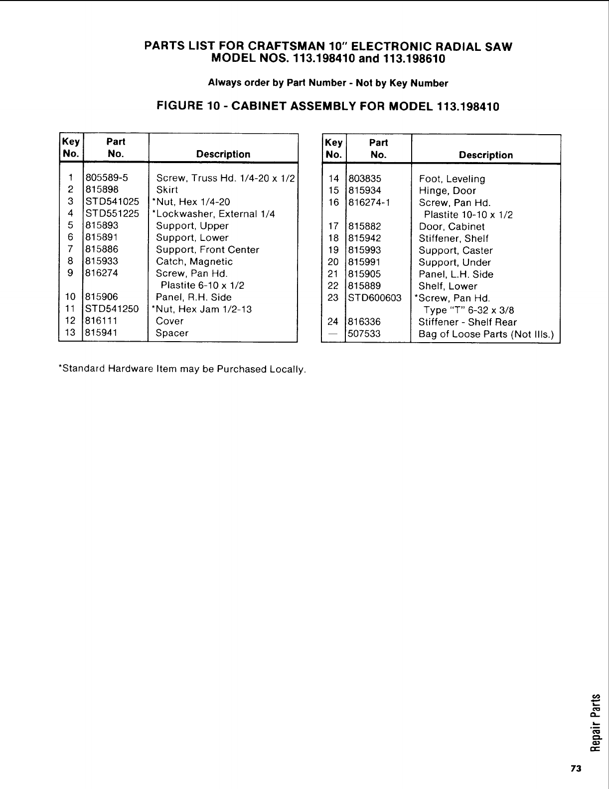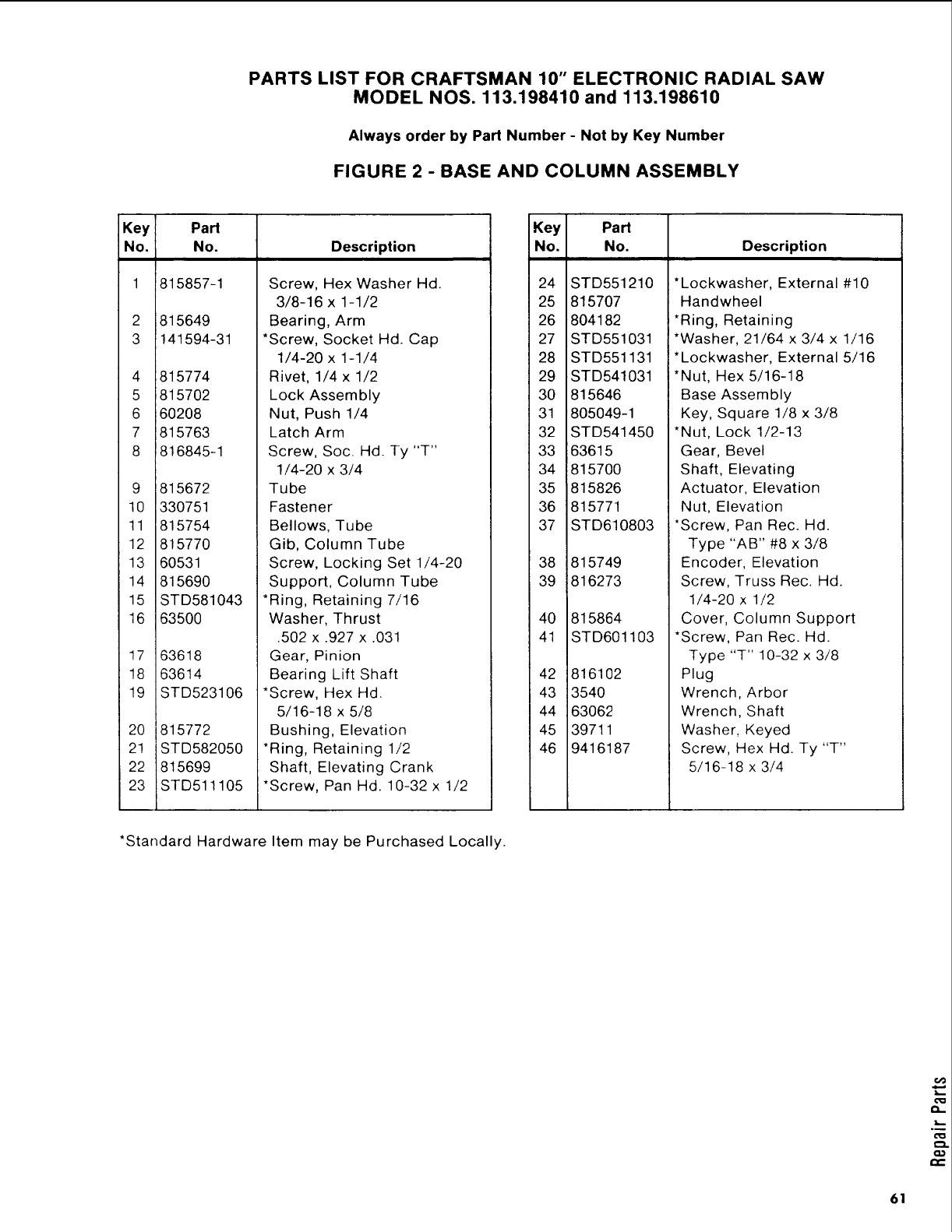 User Manual: Craftsman 113198610 113198610 CRAFTSMAN 10-INCH DELUXE ELECTRONIC RADIAL SAW - Manuals and Guides View the owners manual for your CRAFTSMAN 10-INCH DELUXE ELECTRONIC RADIAL SAW #113198610. Home:Tool Parts:Craftsman Parts:Craftsman 10-INCH DELUXE ELECTRONIC RADIAL SAW Manual