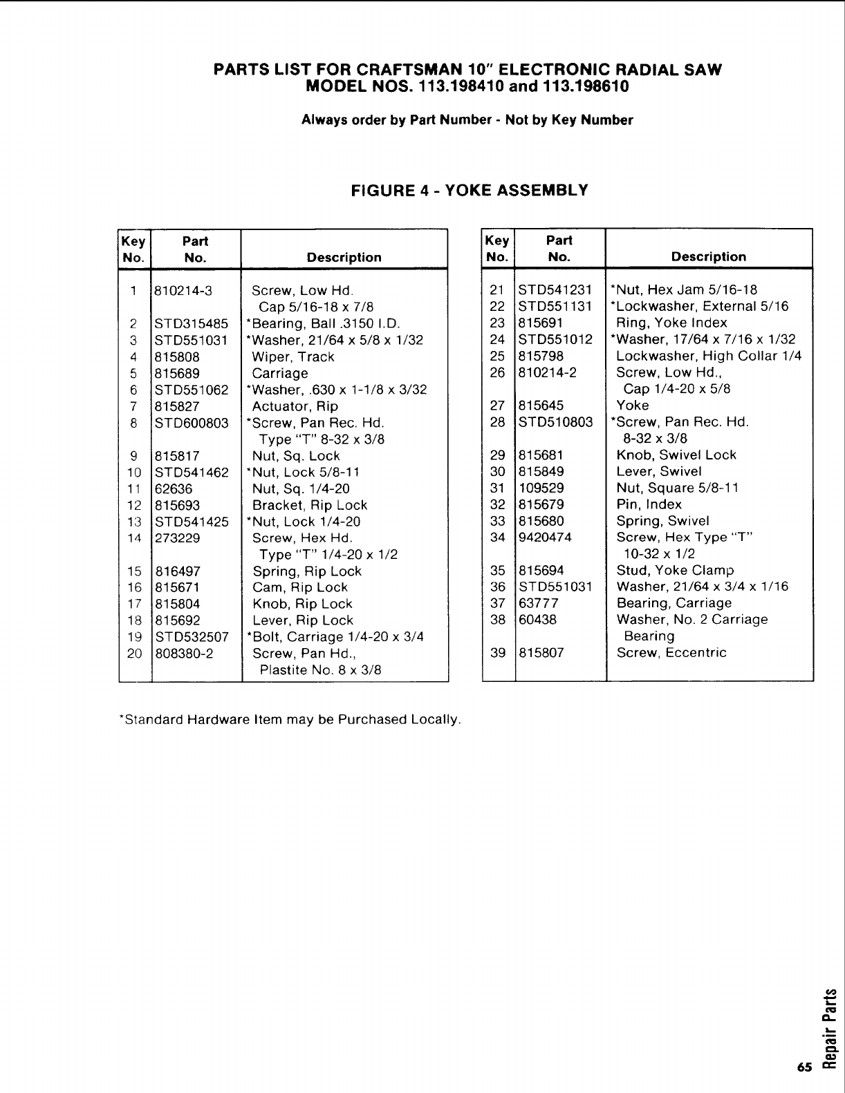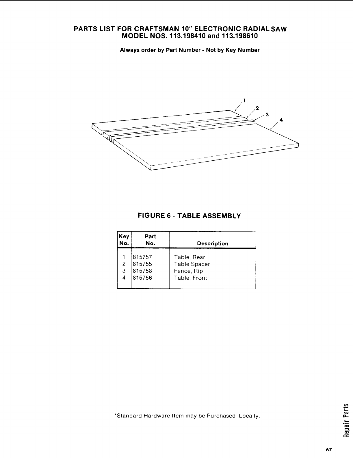 WHEN ORDERING REPAIR PARTS,ALWAYS GIVE THEFOLLOWING