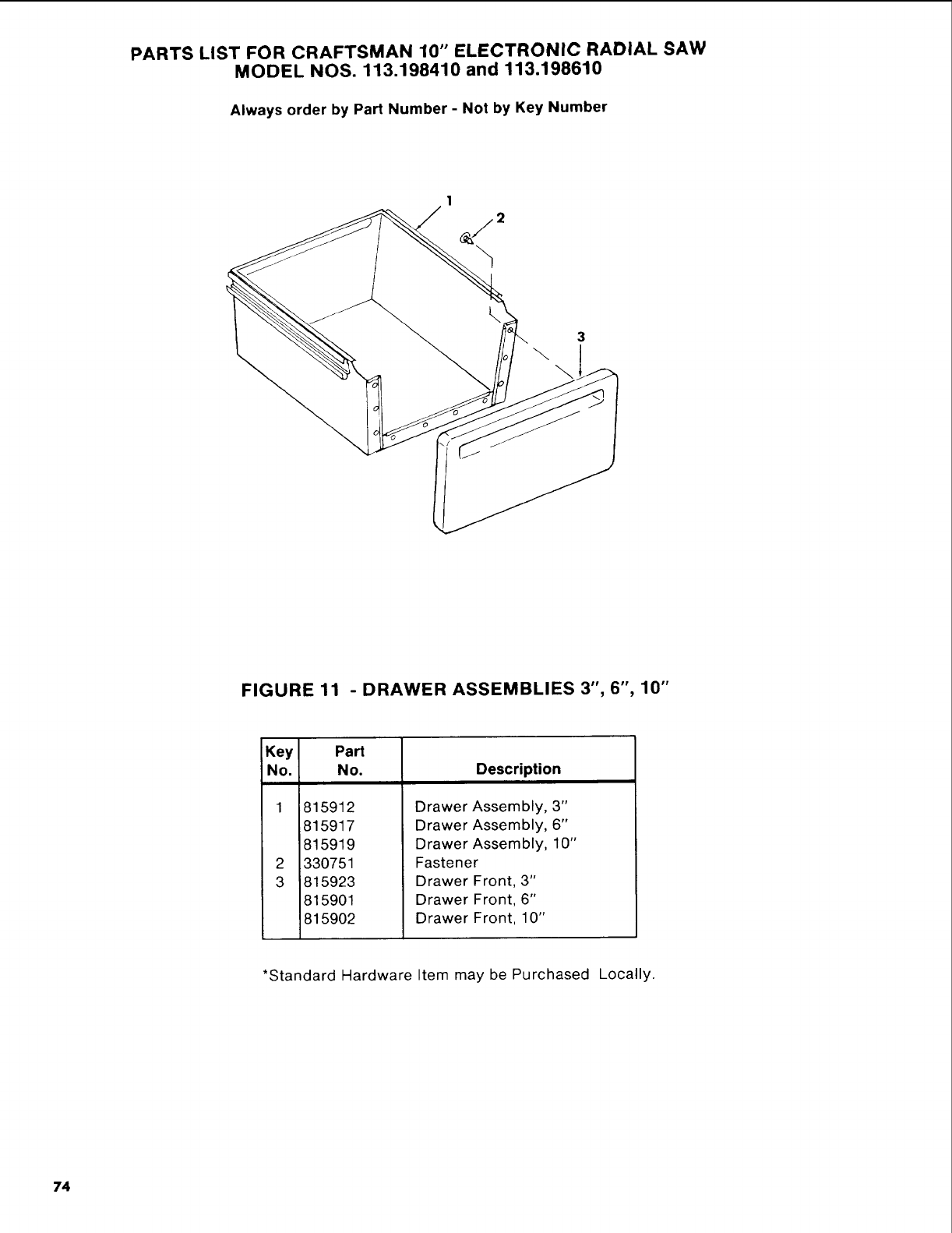FIGURE 11 -DRAWER ASSEMBLIES 3", 6", 10"